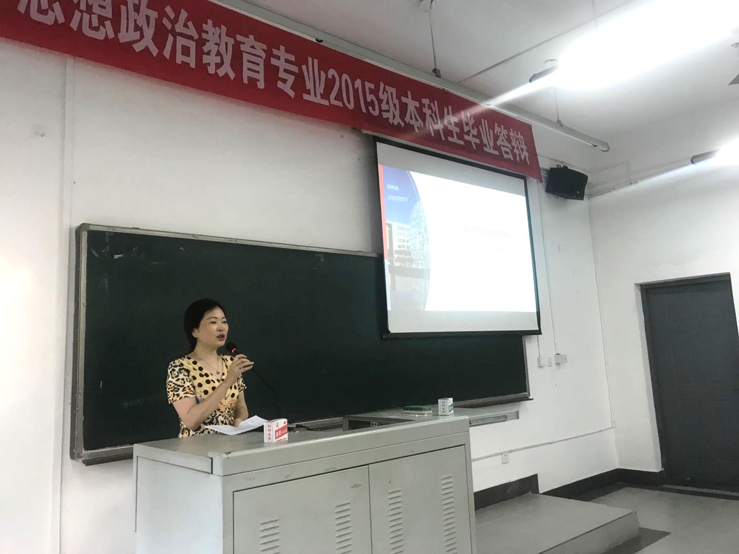 本次答辩分为集中和分组答辩两个环节。有5名学生参加了学院组织的集中答辩,其余学生分为四个小组参加分组答辩。答辩过程包括学生陈述(5分钟)、教师提问、学生回答问题、教师点评四个环节。参加答辩的同学大都能够运用所学知识较为准确地回答老师的问题,答辩老师认真听取每个学生的答辩陈述,对同学们论文创作和答辩给予了充分肯定,同时老师们也指出了每位同学毕业论文中涉及格式、结构、文字表达、学术水平等方面的问题。最后答辩老师根据学生在答辩中的报告过程、报告内容和答辩进行了成绩的综合评定。部分学生参加学院组织的第二轮答辩。