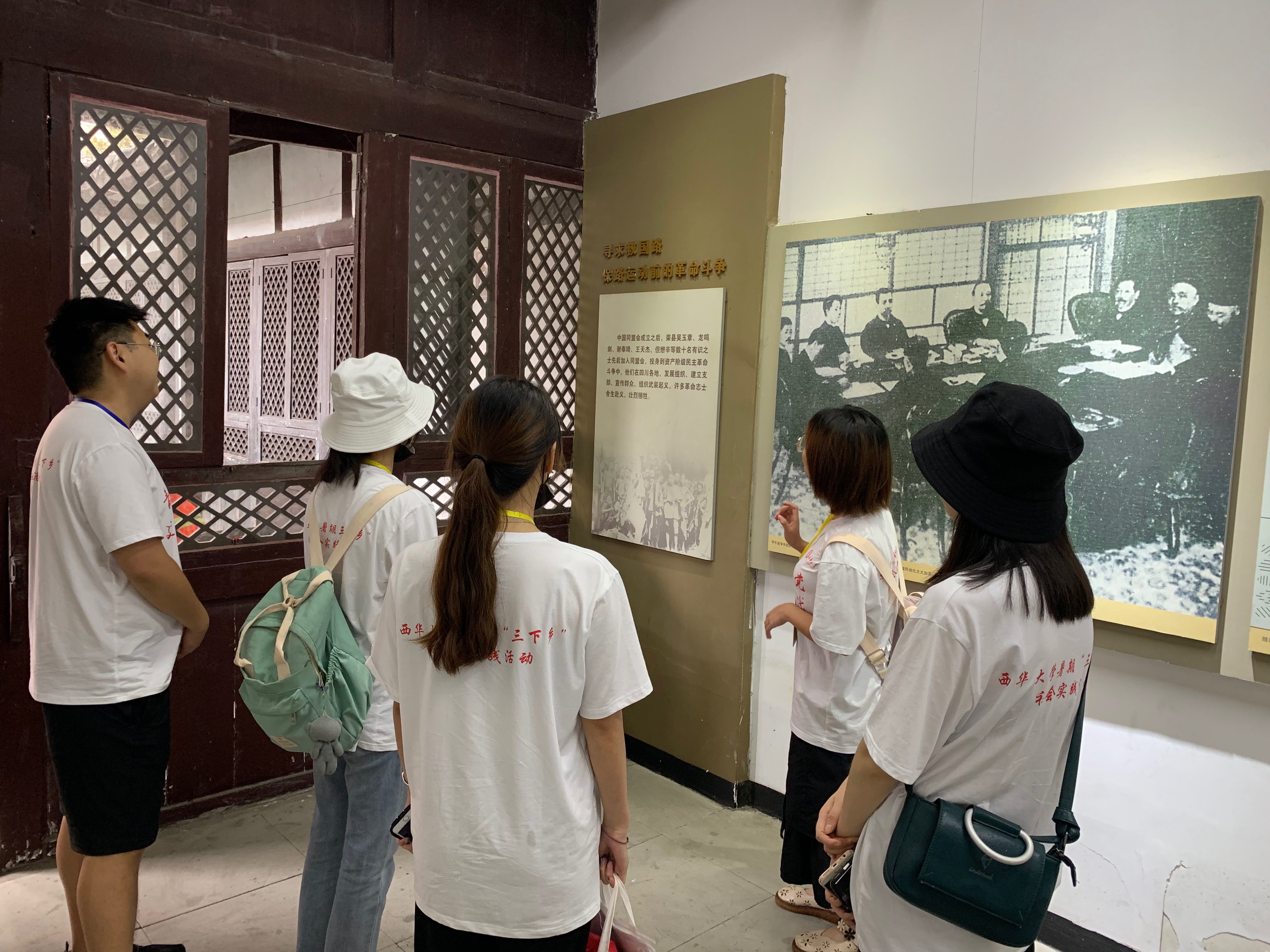 参观完吴玉章故居,志愿者们于下午2点来到了荣县军政府旧址。军政府旧址坐落在旭阳镇首义广场内,为清代建筑,由旧县署的三堂、后堂及两边厢房组成的三合院正厅及部分正房、厢房开辟为陈列室,共六个展室,分三部分展示辛亥革命时期的形势和荣县同盟会活动情况。志愿者们了解到,四川的保路运动为辛亥革命首役武昌起义奠定了基础,荣县于1911年9月25日宣布独立,建立全国第一个县级革命政权——荣县军政府。