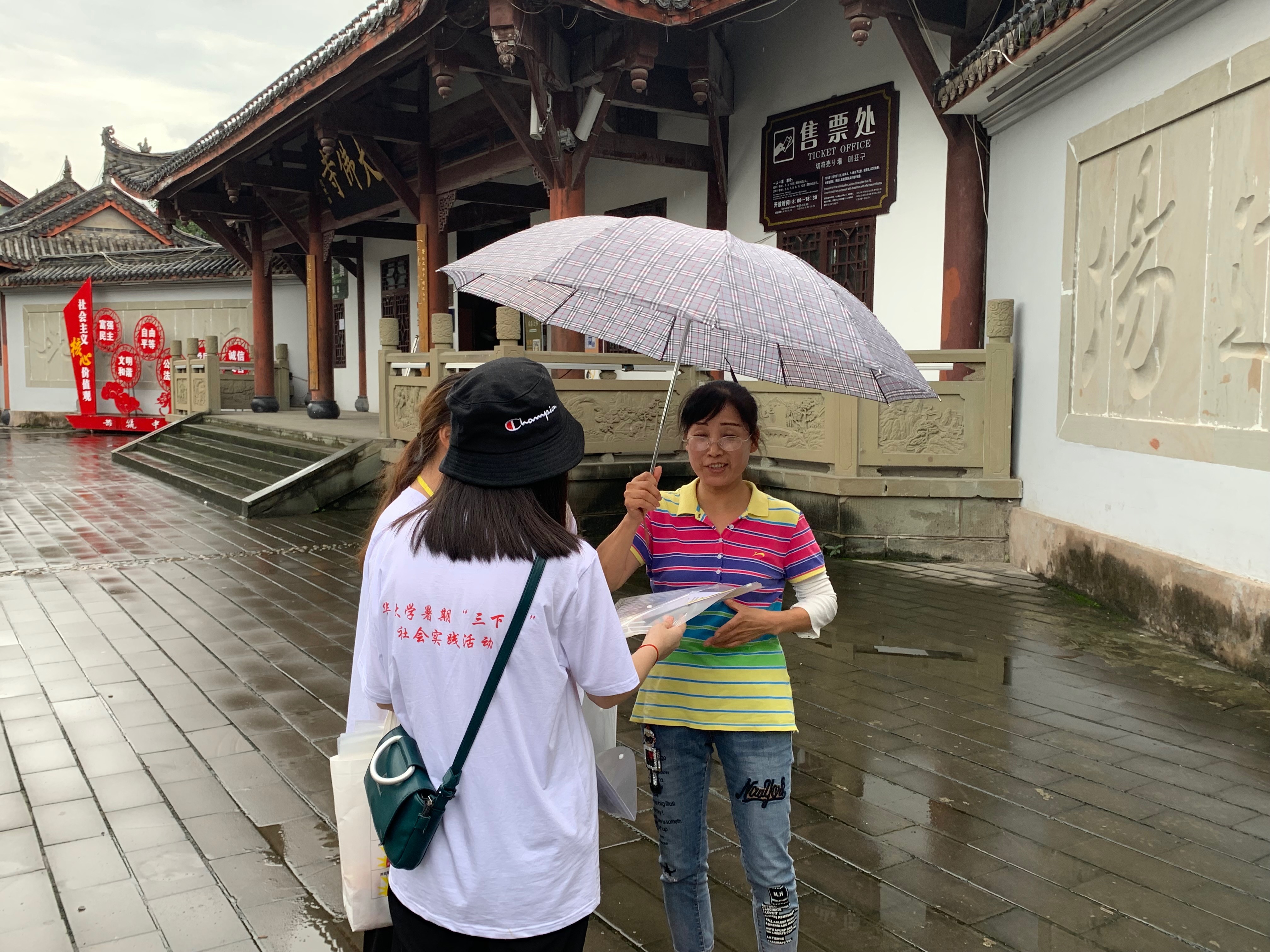 随后,志愿者们对当地老年人进行了寻访,他们给志愿者们讲述了新中国成立70年来,国家、人民生活方式以及人民思想观念的变化。其中一位老爷爷说到:“以前的日子很艰苦,基本生活都难以保障。现在真的是生活得越来越好了,我们每天可以下棋,可以在广场上跳舞,很巴适!”