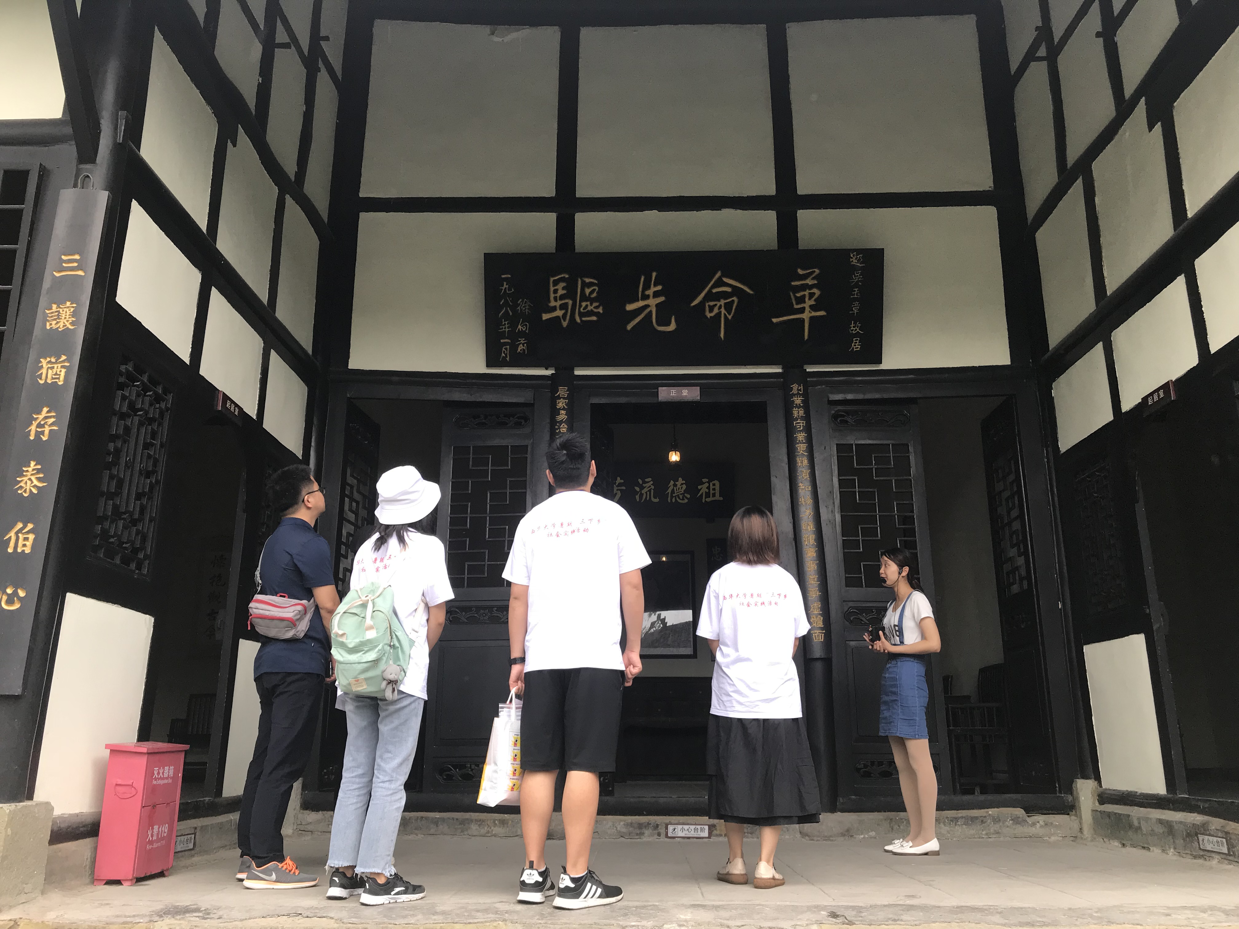 为深入学习宣传习近平总书记在全国两会期间就“传承红色基因”所作的重要讲话精神,2019年7月6日,伟德bv国际体育暑期“三下乡”社会实践团在团委书记李旭老师的带领下,先后参观了吴玉章故居、荣县军政府旧址、荣县大佛寺,开展了弘扬红色文化、宣传保护历史古迹、倡导垃圾分类等志愿服务活动。