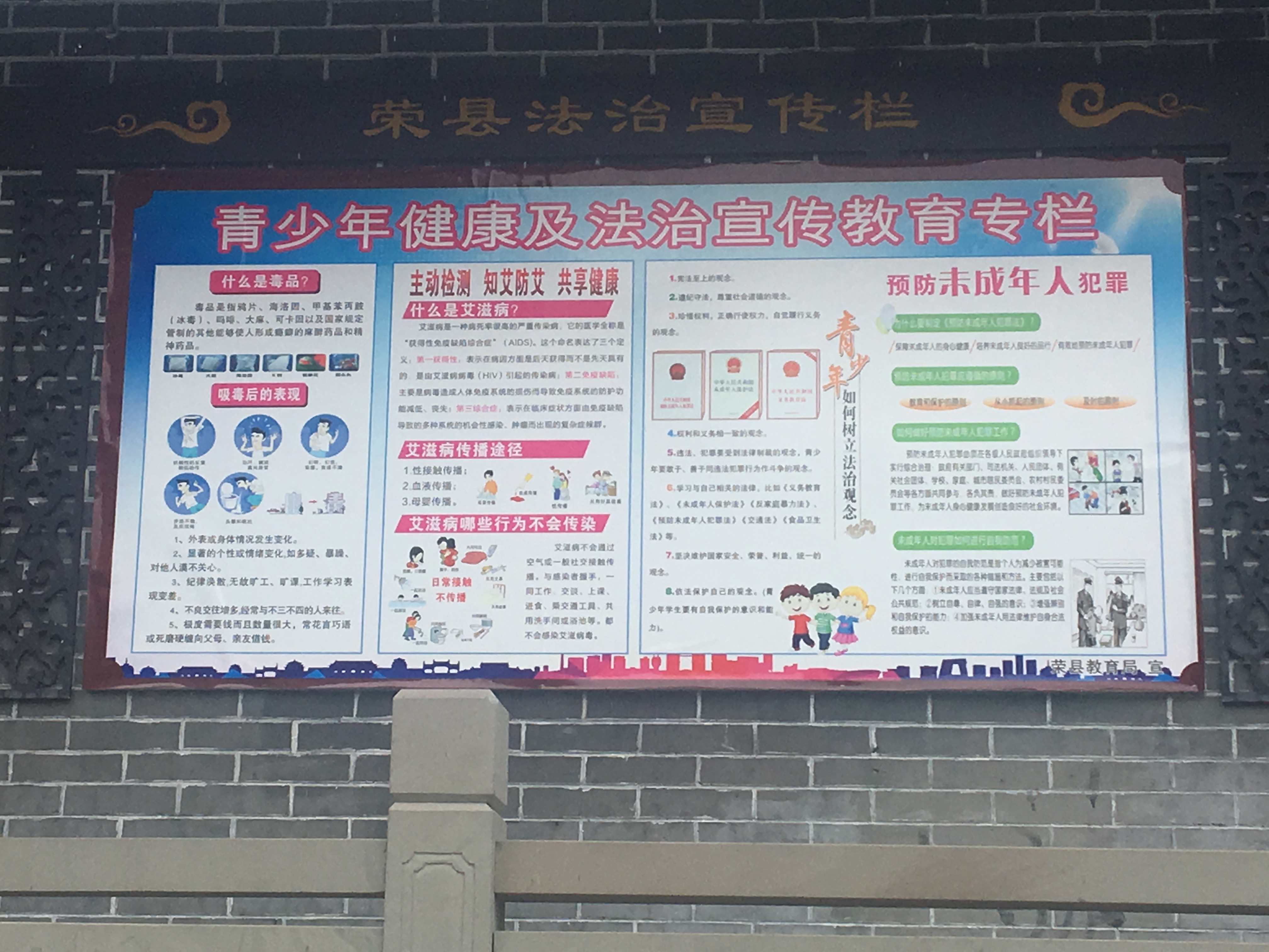 在军政府旧址所处的首义广场,还设有禁毒防艾宣传栏、法制教育宣传栏供市民学习,增强全民的禁毒意识和法制意识。