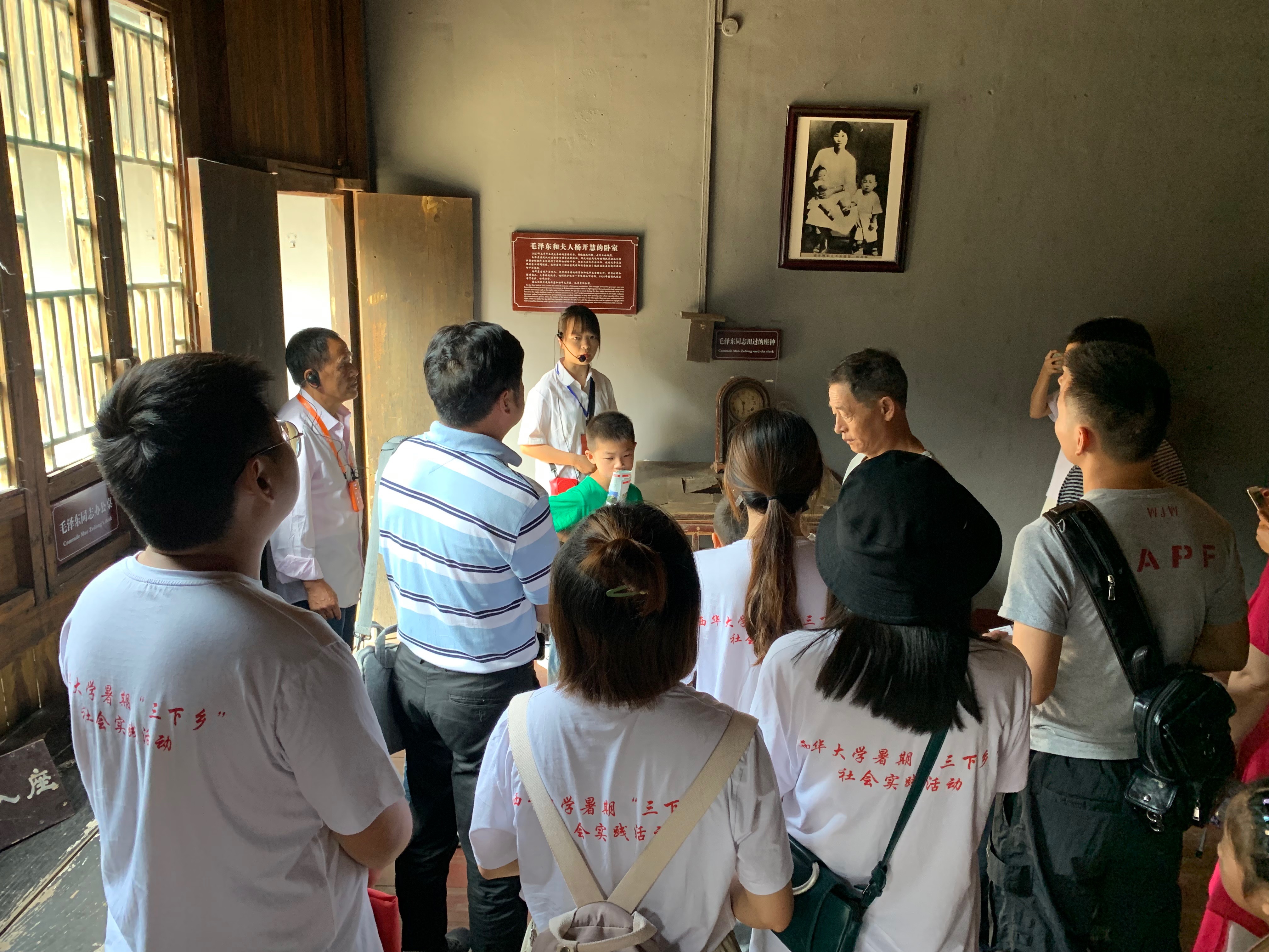 下午2点,志愿者们来到了毛泽东故居。故居通过横屋中的方桌,卧室中的床、衣柜、书桌等物品复原了主席曾经生活的场景。主席在艰苦的环境下仍不忘记自己的求学梦想,激励着志愿者们怀揣梦想、努力奋斗。