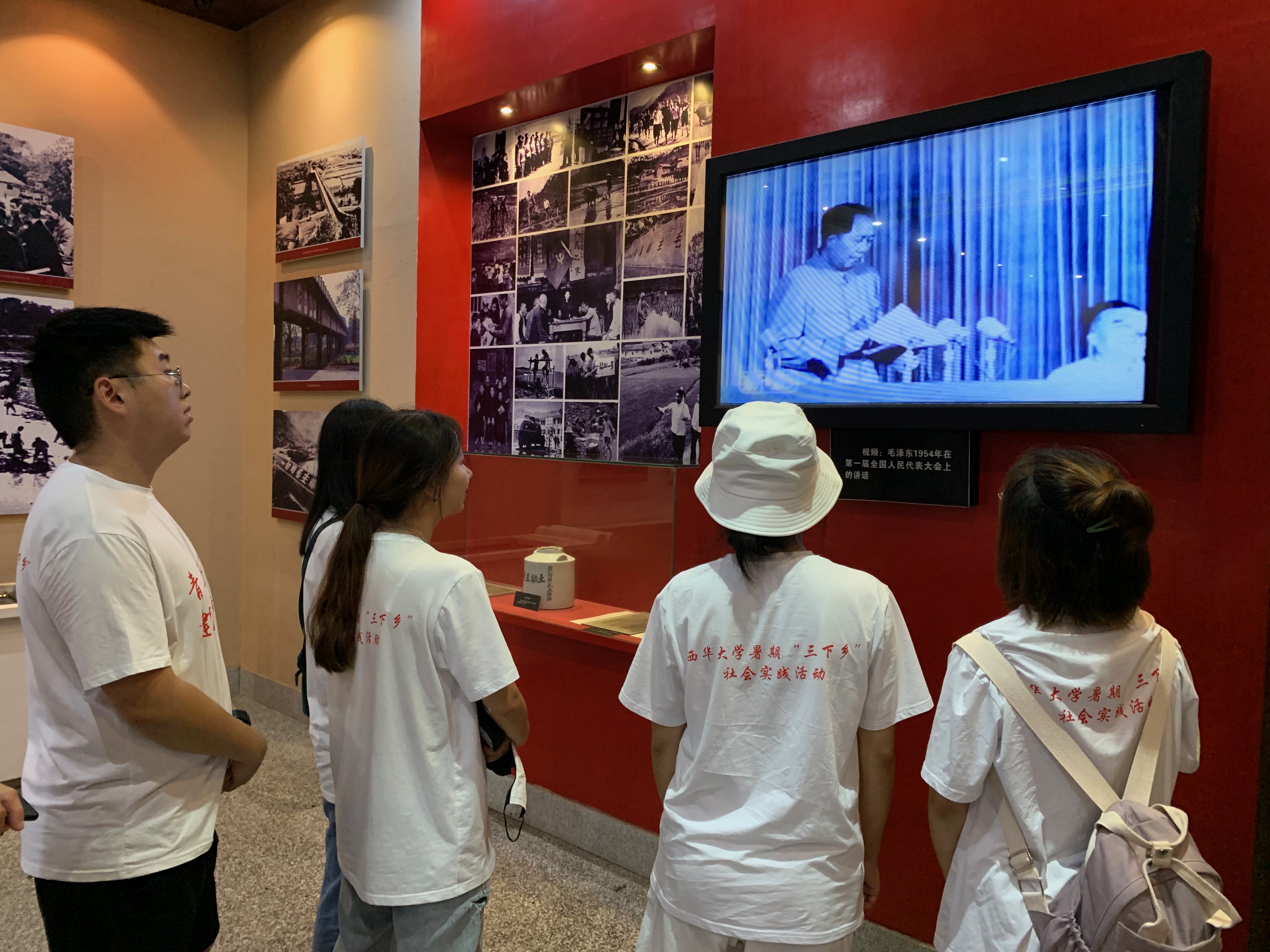 接下来,一行人前往“毛泽东求学之路”展厅。展厅主要呈现了毛主席青少年时期艰难的求学历程及思想上经历的求索-解惑-励志三阶段。志愿者们还参观了毛氏宗祠和毛泽东同志纪念馆,对主席生平经历有了更全面的认识。