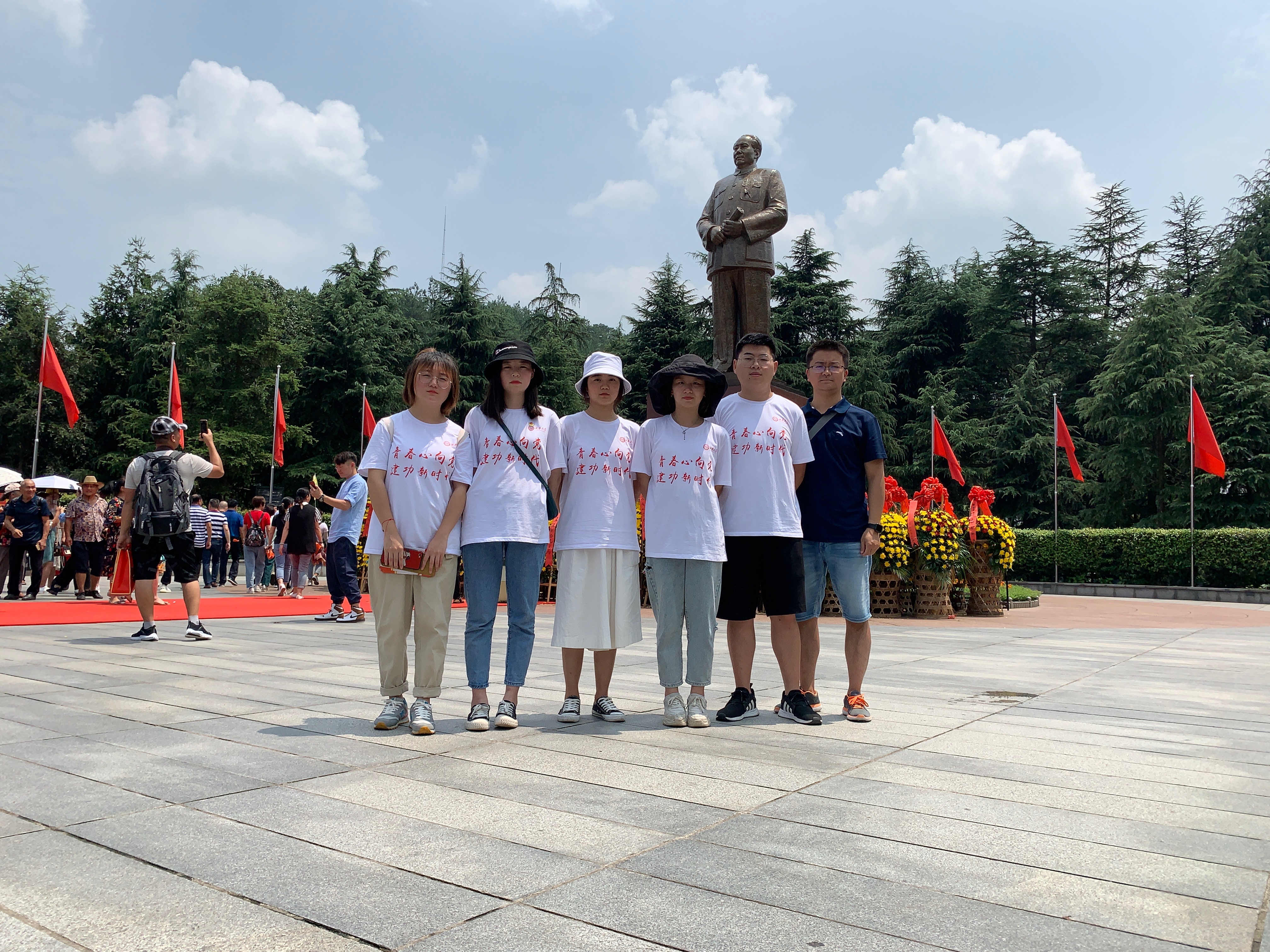 为了缅怀伟大领袖毛主席、弘扬红色革命精神、纪念新中国成立70周年。2019年7月11日,伟德bv国际体育暑期“三下乡”社会实践团全体成员来到了湖南省韶山市,参观了毛泽东纪念园、故居、铜像广场。