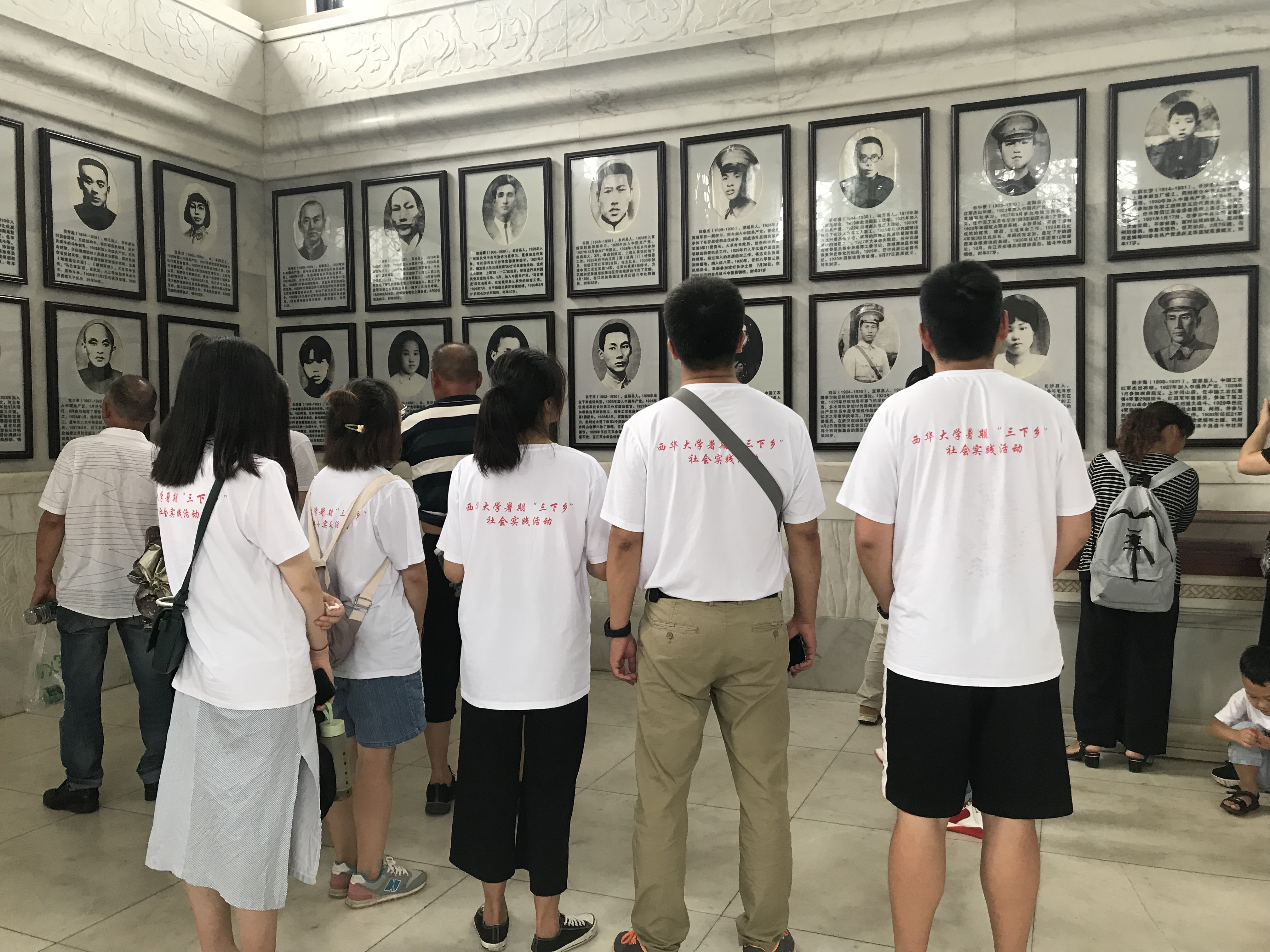 为弘扬红色文化、传承红色基因、培养家国情怀、缅怀革命先烈,引领志愿者们接受爱国主义教育,2019年7月12日上午9点,伟德bv国际体育“三下乡”实践团队在团委书记李旭老师的带领下,志愿者们首先来到湖南人民英雄纪念陈列馆,馆内大厅前设纪念台,后设祭堂,竖碑铭:“近百年来特别近三十年来为中国人民解放事业而光荣牺牲的湖南人民英雄烈士们永重不朽。”纪念馆按“旧民主主义革命时期”、“新民主主义革命时期”、“社会主义革命和建设时期”几个部分,分别展示了谭嗣同、黄兴、向警予、蔡和森、夏明翰、郭亮、雷锋等90多位烈士的照片和生平事迹,令志愿者们肃然起敬。最后,志愿者们在祭堂敬献了花篮并进行了默哀仪式。