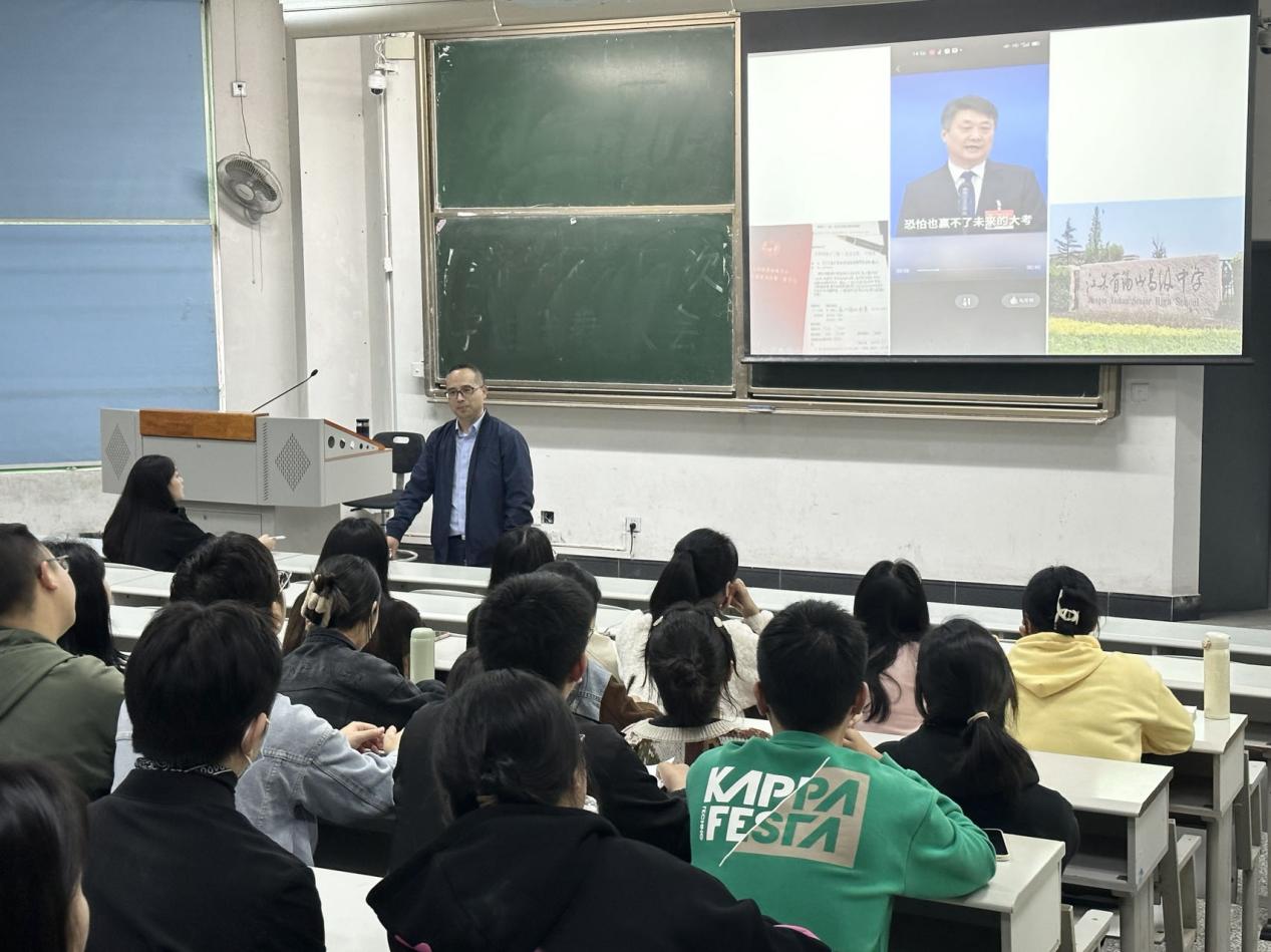 郑小明老师代表学院对蒋校长精彩的讲座表达了由衷的感谢,并对同学们提出希望。他要求同学们深刻领会讲座内容,作为一名未来的思政课教师,不仅要走“近”、走“进”学生,更要有乐教爱生、甘于奉献的仁爱之心。