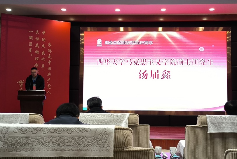 11月29日至12月1日,纪念朱德同志诞辰137周年暨“朱德与党风廉政建设”学术研讨会在四川仪陇举行。本次会议由西华师范大学、朱德故居管理局共同主办,来自电子科技大学、西华师范大学、河南理工大学、bevictor伟德、香山革命纪念馆、井冈山革命博物馆等单位的专家学者共100余人参会。朱德嫡孙、中国人民解放军空军指挥学院原副院长朱和平少将,中共南充市委宣传部部长廖雪梅,中共仪陇县委书记郭宗海,西华师范大学党委副书记李敏等出席开幕式并致辞。四川省地方志办公室副主任江红英、云南朱德生平研究会会长卓人政、电子科技大学伟德bv国际体育副院长刘宗灵、西华师范大学历史文化学院院长朱华分别作主题报告。
