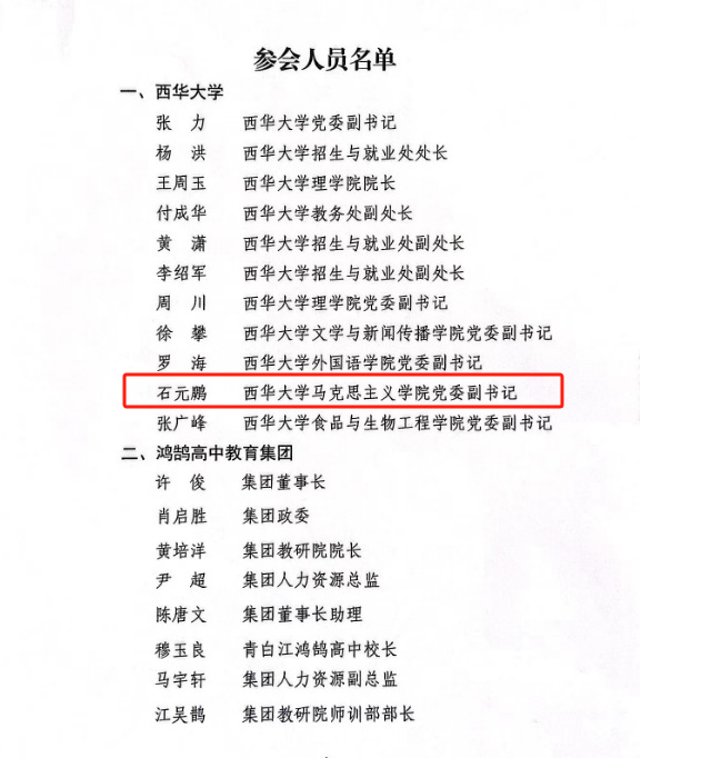 近日,我院党委副书记、纪委书记石元鹏带队随校领导赴鸿鹄高中教育集团走访调研,并进行访企拓岗专项活动。