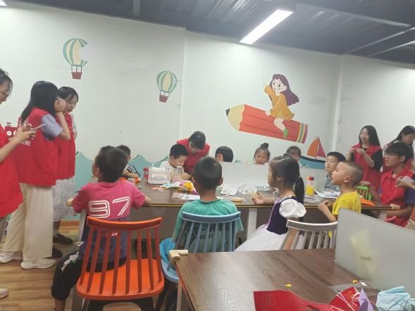 本次红色文化进社区志愿活动主要面向的是社区儿童,总体活动由剪纸教学、讲述红色故事、教唱红歌三个部分组成。志愿者们耐心地教小朋友学习剪纸,拉近了和小朋友们之间的距离。接着,志愿者给小朋友讲述红色故事,包括《小侦察员张嘎》《海娃巧送鸡毛信》《小波和他的山药蛋》等小故事,让小朋友们在对革命烈士产生由衷敬畏之情的同时,也在心中埋下一颗爱国的种子。最后,志愿者们教小朋友唱《红星闪闪》,在学唱之前,志愿者为小朋友讲解了《红星闪闪》这首歌背后的故事,让小朋友们知道了歌曲背后潘冬子的故事。在教唱结束后,现场小朋友和志愿者们进行了合唱,用歌声表达了对革命烈士的缅怀,此次志愿服务活动也在歌声中完美地落下帷幕。