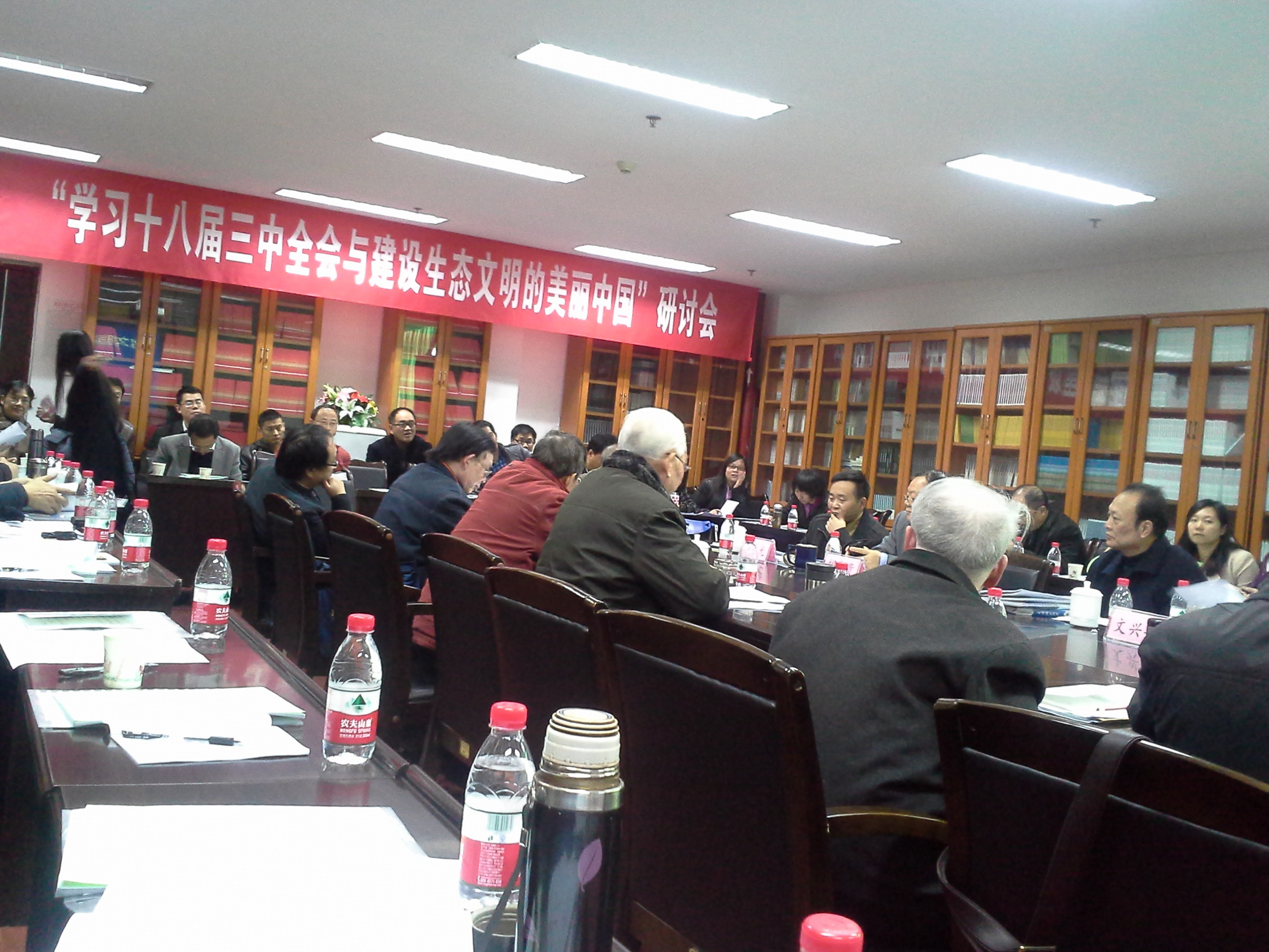 当天上午,各位专家分别从不同视角解读了十八届三中全会精神和生态文明,尤其是对生态文明的时代背景、文化渊源和实现路径提出精辟见解。下午,与会代表进行分组讨论,大家就如何贯彻落实党的十八届三中全会精神和践行生态文明理念等问题开展了广泛交流和探讨,岳猛老师和王贝老师在会上作了主题发言。
