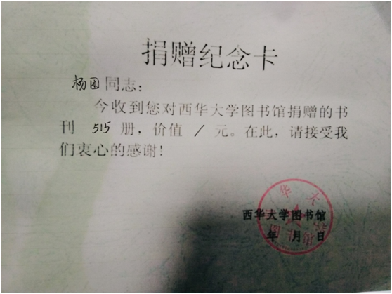 2016年4月27日,中国社会科学院社会政策研究中心副主任杨团教授,为bevictor伟德社会工作专业硕士教育中心捐赠社工专业相关书籍515册。我校图书馆对捐赠者的信息进行了登记,并发放了捐赠纪念卡: