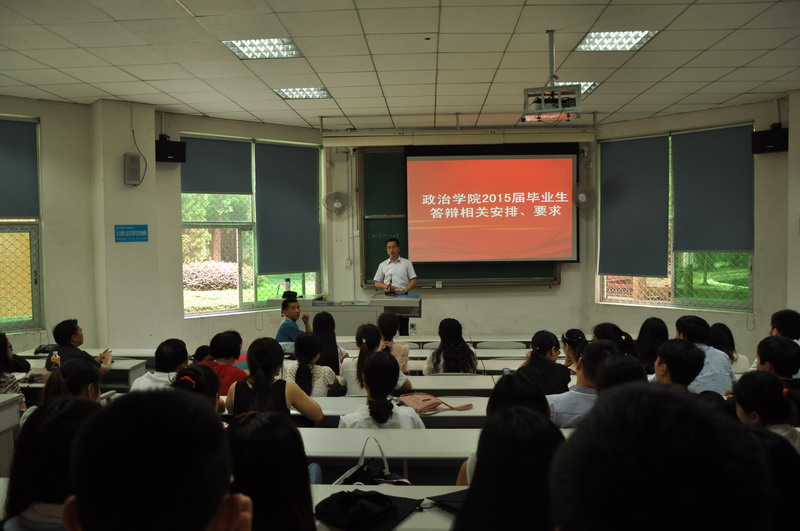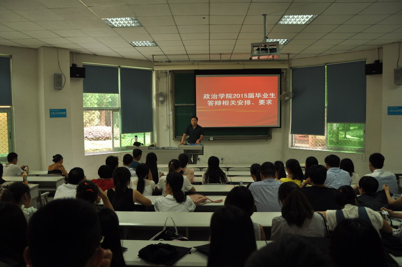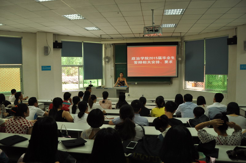5月20日下午1:00,政治学院组织2015届全体毕业生在4A103教室召开了关于毕业论文答辩工作会议,学院副院长郑小明、王贝老师、叶萍老师出席了此次会议。