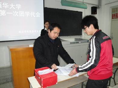 大会第三、四、五项议程在政治学院团委书记任亚妮老师的主持下,有条不紊的进行着:宣读选举细则,简要介绍候选人情况,推选监票人、计票人等。本着公平、公正、公开的原则,选出了政治学院团委委员会成员:任亚妮、唐福团、张代玉、胡玉山及廖云杉。随后,在张代玉的主持下,任亚妮、唐福团分别当选为政治学院团委书记和副书记,并代表出席共青团bevictor伟德委员会第一次代表大会。学生代表选举大会也在学生会主席王轩霆的主持下紧锣密鼓的进行着,最后由08级思想政治教育1班的唐福团同学及09级思想政治教育1班的黎欣欣同学获选。