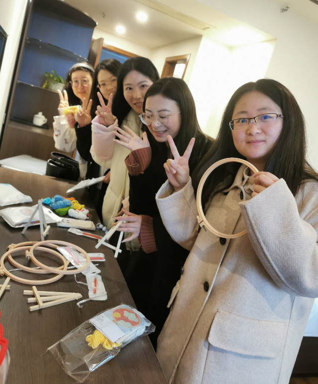 此次主题活动主要内容是手工体验——戳戳绣。校本部及宜宾校区的学院女教职工们参与热情高涨,活动现场充满了欢声笑语。在轻松愉悦的氛围下,展现出一件件栩栩如生的手工作品。