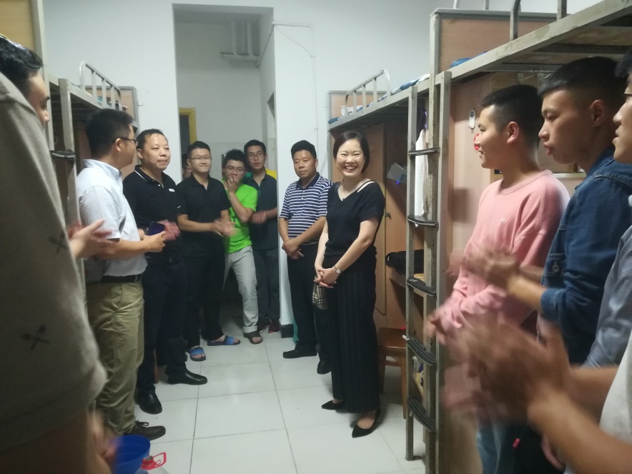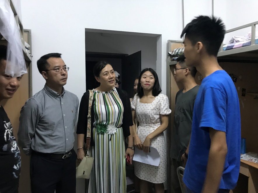 2019年9月6日晚7点,bevictor伟德,伟德bv国际体育院长万远英、副院长郑小明、党委副书记兼副院长李欣、院长助理王贝、伟德bv国际体育教授尹德志、党政办公室主任冯冬、学工办主任兼团委副书记李旭、2019级辅导员张小静以及第十二届团委学生会代表分两队进入2019级本科生和研究生所在的寝室——临江苑9栋(本科女生)、临江苑12栋(本科男生)、锦地苑5栋(研究生女生)、锦地苑1栋(研究生男生)进行走访。