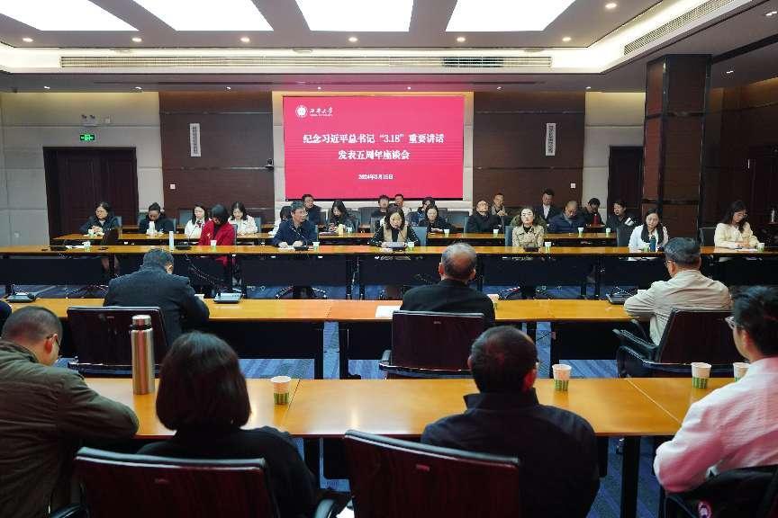 3月15日上午,伟德bv国际体育纪念习近平总书记“3·18”重要讲话发表五周年座谈会在办公楼101会议室举行。伟德bv国际体育全院教师参加本次座谈会,会议由学院党委书记万远英主持。