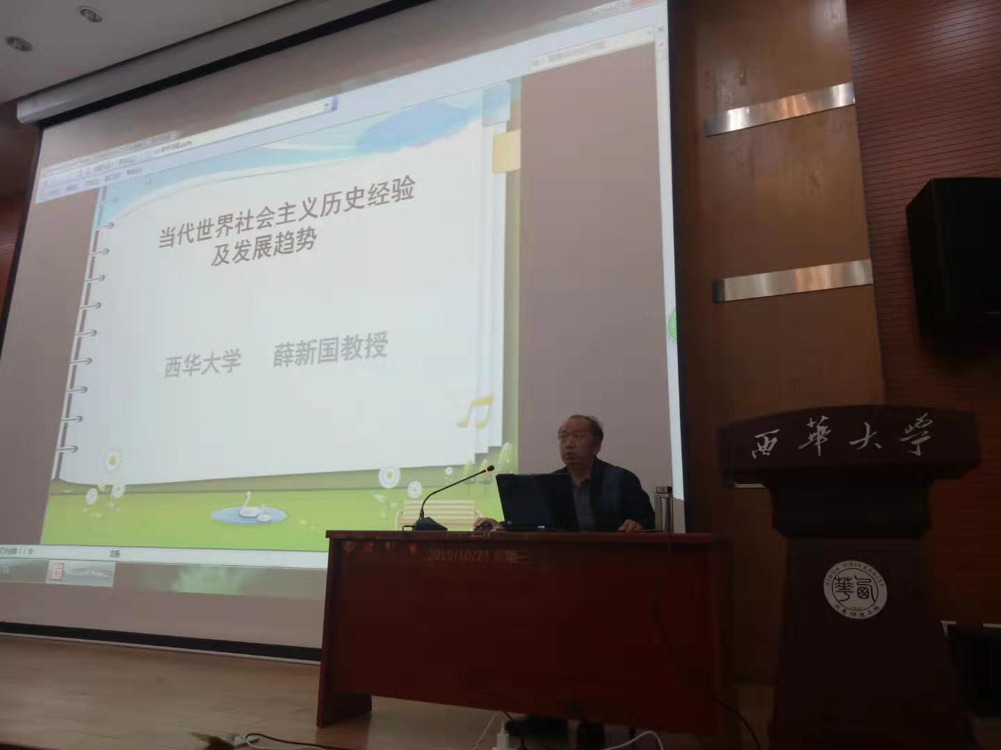 2019年10月23日下午,薛新国教授在图书馆报告二厅进行了面向全校师生的学术报告,报告的主题为:《当代世界社会主义历史经验及发展趋势》。