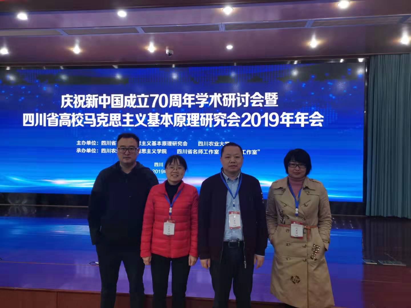 10月26日,四川省高校马克思主义基本原理研究会2019年年会在四川农业大学举行。来自四川大学、电子科技大学、西南交通大学、西南财经大学等省内30余所高校伟德bv国际体育近120位教师参加此次年会。我院4名教师应邀参加此次年会。