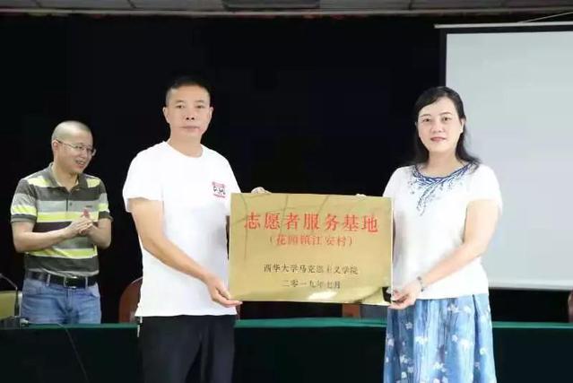 2019年7月12日,伟德bv国际体育与花园镇江安村合作共建、志愿服务揭牌仪式在江安村党群服务中心成功举行,伟德bv国际体育党委副书记兼副院长李欣、伟德bv国际体育教授尹德志、区委组织部、区经信局、花园街道、江安村等相关负责人及我院志愿者代表参会。