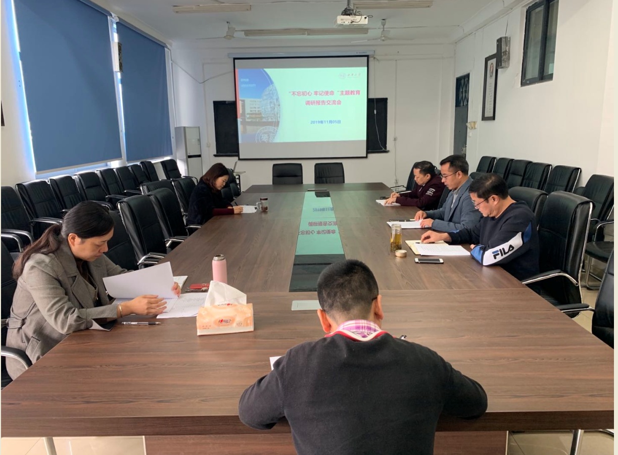 为推动“不忘初心,牢记使命”主题教育活动的深入开展,按照学校主题教育工作安排,11月5日上午,伟德bv国际体育在学院会议室召开了“不忘初心、牢记使命”主题教育调研报告交流会。学院全体领导班子成员参加了会议。