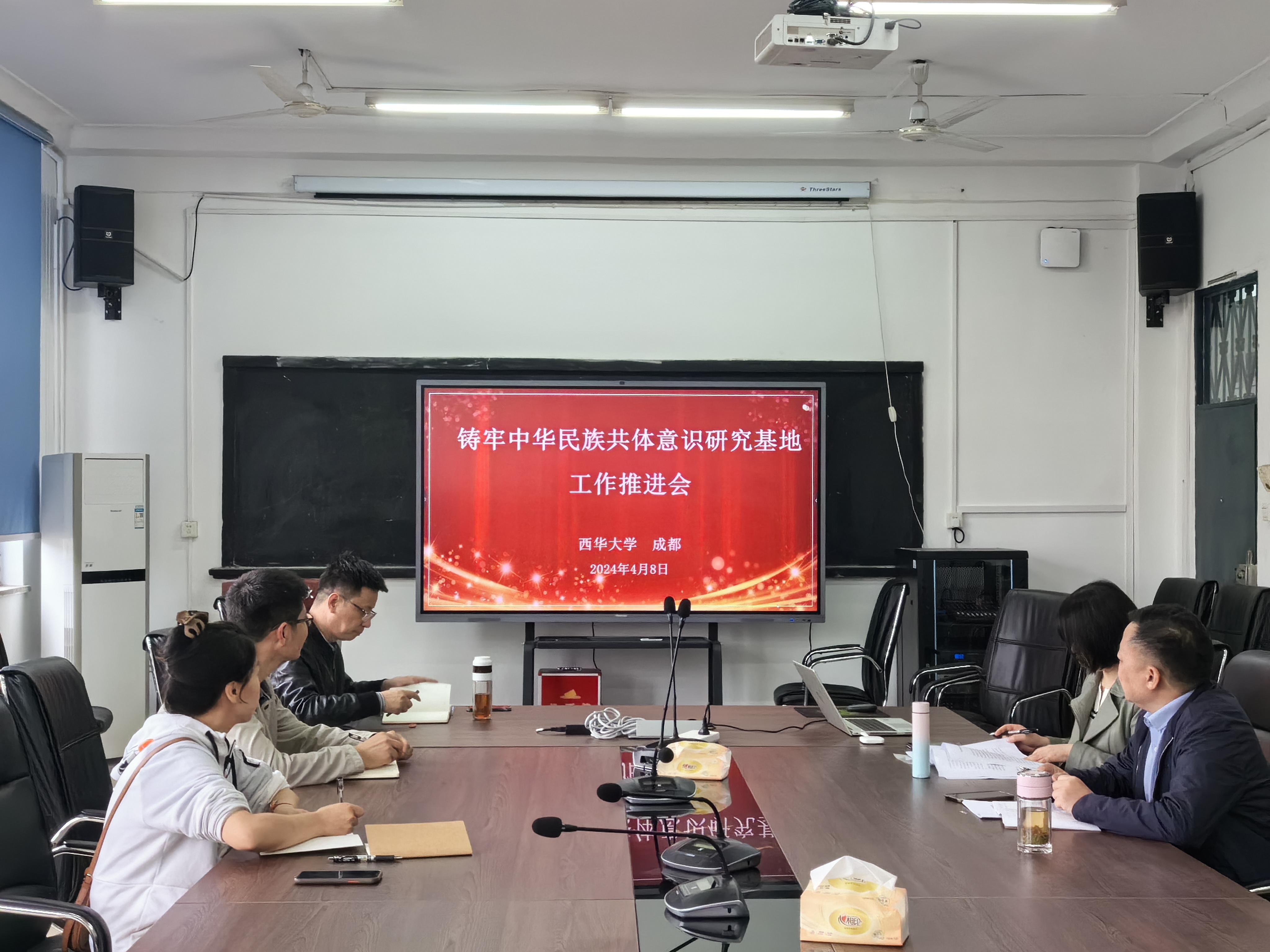 2024年4月8日,为进一步推进铸牢中华民族共同体意识研究基地的相关工作,在伟德bv国际体育会议室召开工作推进会,基地首席专家熊征教授、副主任吴会蓉教授、办公室主任青姆博士和伟德bv国际体育院长冯永泰教授、副院长王贝教授参加。