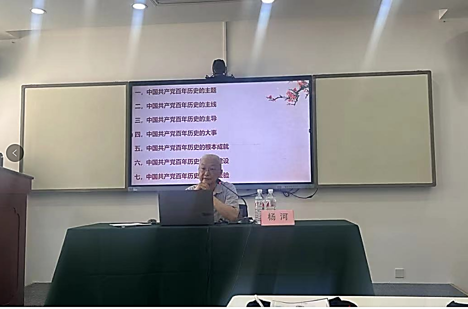 会议邀请原北京大学副书记、高等学校社会科学发张研究中心主任、国家教材委员会专家杨杨河教授作报告,报告内容围绕“习近平论中国共产党历史”展开,分为中国共产党百年历史的主题、中国共产党百年历史的主线、中国共产党百年历史的主导等七个方面展开论述。我们要从中国共产党的伟大历史中汲取前进的智慧和力量,立足党的百年历史新起点,开启新征程,为实现中华民族伟大复兴而奋斗;应把党史的学习教育与习近平总书记对教育工作的重要论述结合起来思考,坚持不懈用党的创新理论最新成果武装头脑、指导教育教学工作,传承红色基因,传递精神力量,激励感召一代代人在新时代的长征路上不忘初心、牢记使命、砥砺前行。
