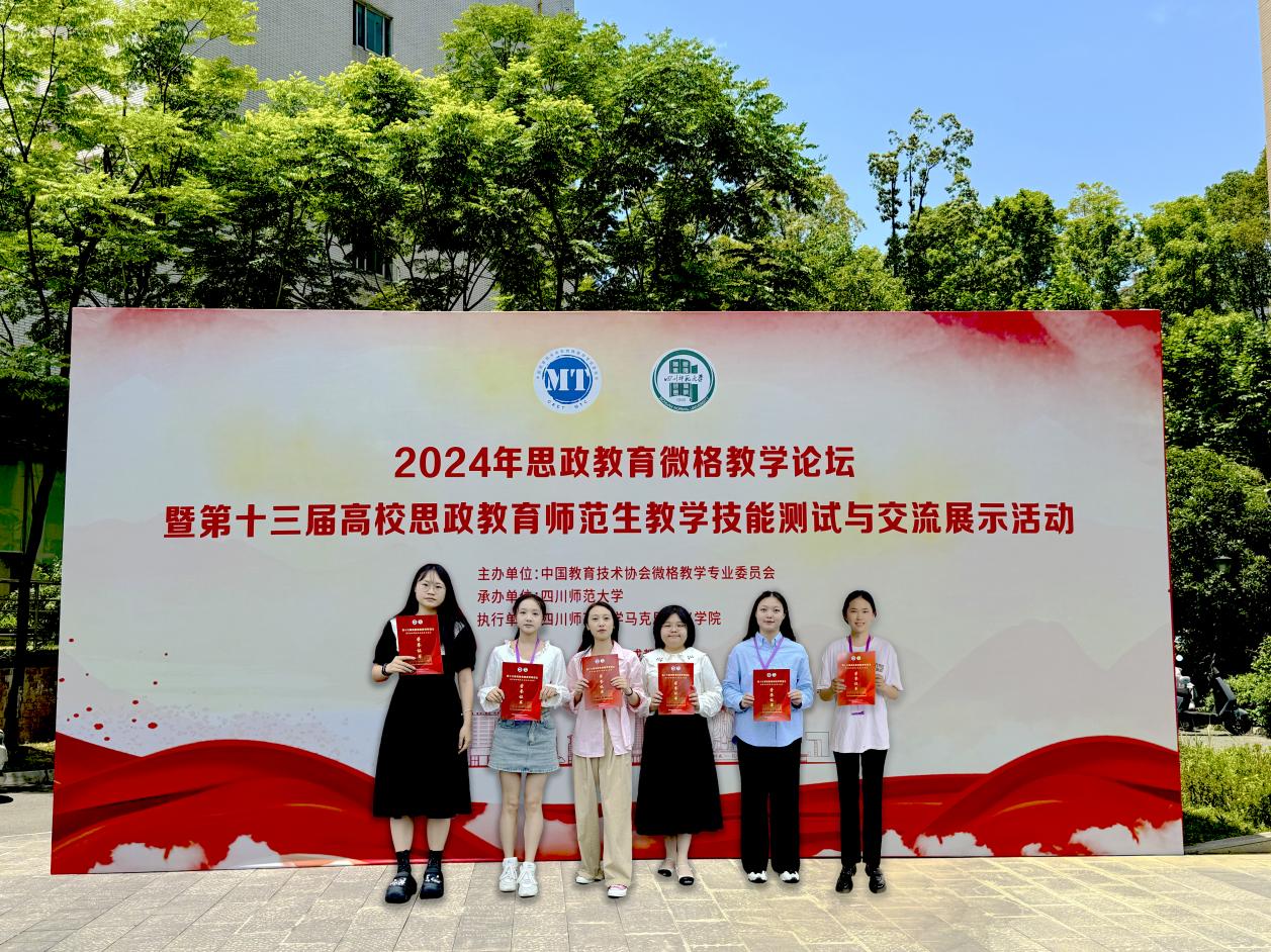 2024年5月25日-27日,bevictor伟德,伟德bv国际体育学科教学(思政)方向硕士研究生、思想政治教育本科专业共6名学生,参加了由中国教育技术协会微格教学专业委员会主办、四川师范大学承办的2024年思政教育微格教学论坛暨第十三届高校思政教育师范生教学技能测试与交流展示活动,该活动吸引来自全国93所院校的547位选手和215位指导教师参加。