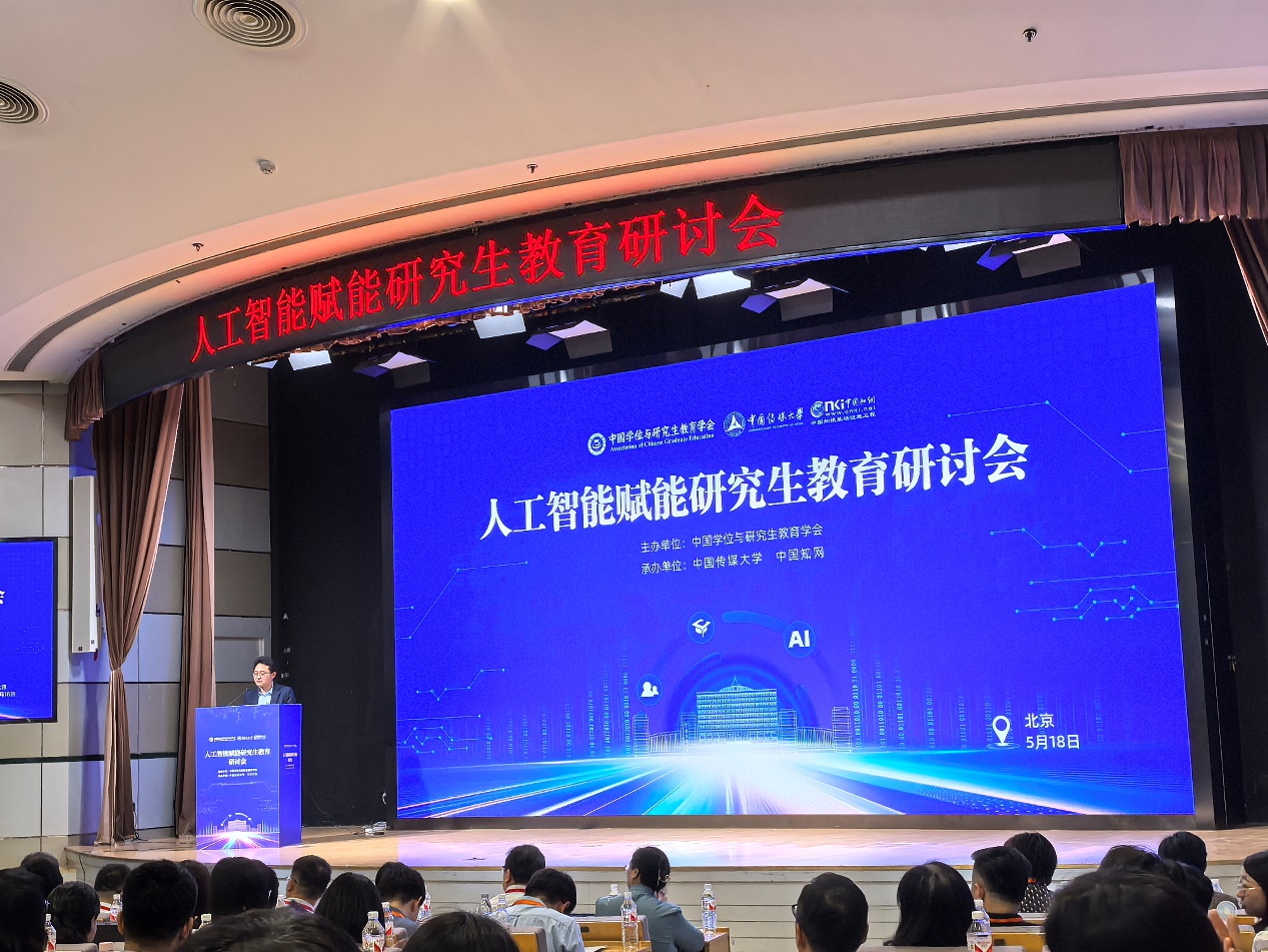 5月18日,“人工智能赋能研究生教育研讨会”在中国传媒大学成功召开。中国工程院院士、原中央电视台总工程师丁文华,教育部学位管理与研究生教育司培养质量处处长杨秋波,中国学位与研究生教育学会副秘书长赵忠升,北京航空航天大学党委常委、副校长赵巍胜,中国传媒大学党委常委、副校长刘守训,欧洲人文和自然科学院外籍院士、清华大学人工智能研究院常务副院长孙茂松,同方知网副总经理柯春晓等来自全国研究生教育和人工智能领域的300余位领导、专家、学者出席。大会由中国学位与研究生教育学会主办,中国传媒大学、中国知网承办。我院研究生教学部曾小林老师参加了此次会议。