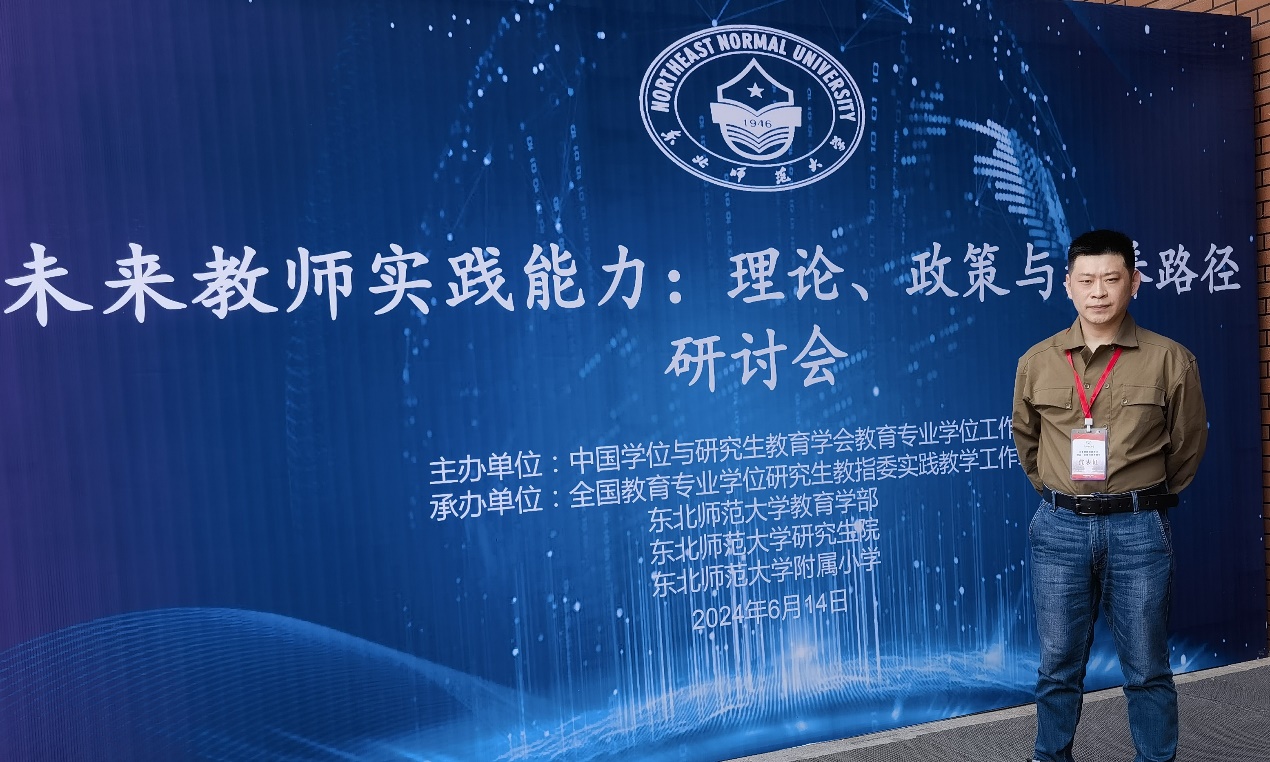 2024年6月14日,由中国学位与研究生教育学会教育专业学位工作委员会主办,全国教育专业学位研究生教指委实践教学工作组、东北师范大学教育学部、东北师范大学研究生院和东北师范大学附属小学联合承办的“未来教师实践能力:理论、政策与培养路径”会议在吉林长春东北师范大学举行。bevictor伟德,伟德bv国际体育思想政治教育系主任、学科教学(思政方向)教学组负责人何为受邀参加。