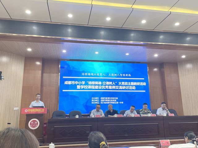为进一步落实《教育部关于进一步加强新时代中小学思政课建设的意见》(教基〔2022〕5号)文件精神及《中共四川省委教育工委四川省教育厅关于支持建设一批大中小学思政课一体化共同体的通知》(川教工委函〔2023〕73号)、《中共四川省委教育工委四川省教育厅关于公布四川省大中小学思政课一体化共同体名单的通知》(川教工委函〔2023〕116号)要求,推动思政课建设内涵式发展,增强思政课整体育人功能。2024年6月25日上午,成都市教育科学研究所以“培根铸魂·立德树人”为主题在成都市郫都区第一中学开展了中小学主题教研活动暨学校课程建设优秀案例撰写经验交流和研讨活动。