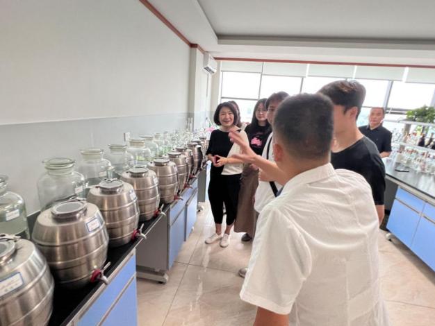 参观的最后环节,刘英老师引导同学们现场座谈交流。刘英老师指出,通过考察深入了解企业党建,了解工匠精神,并将理论学习与实践行动相结合,内化于心,外化于行。杨浩同学表示,企业的党建工作扎实且有成效,能够看到围绕企业愿景、核心价值观、企业使命和工匠精神的精准提炼,还能落实到抗震救灾和职工队伍建设方方面面,说明企业真正在提升现代化基层治理能力方面做细做实。沈宇洋同学分享了自己的体会,通过现场品酒、浸润在酒糟酒曲和窖泥之间,让他明白企业的产品和口碑离不开酿酒使用的高山雪水到川西土壤微生物,传承上百年的非遗手工技艺与本土自然环境完美融合在企业的日常生产当中。
