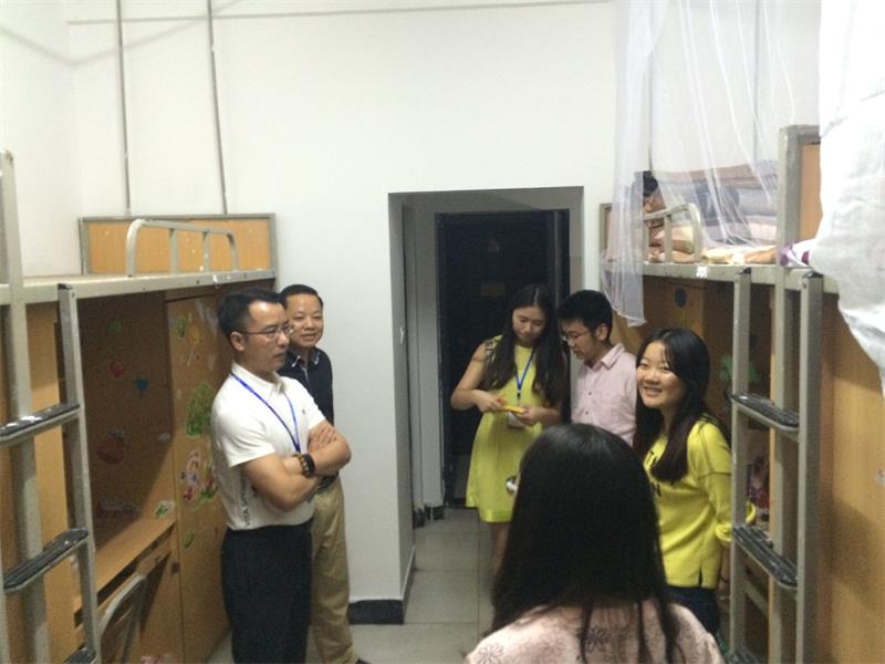 学院领导、老师来到新生寝室,亲切询问同学们到校后的生活情况,寝室布置情况等。老师们的到来受到同学们的热情欢迎,老师们和蔼可亲的态度和幽默风趣的谈吐拉近了师生间的距离,给新生们送去了温暖;每走进一个寝室,院领导都亲切地与新生交谈,仔细地询问同学们“来自哪里?”、“对学院的印象怎样?”、“刚到学校是否适应?”、“学校的饭菜是否合口?”、“是否有其他困难?”。师生之间其乐融融,亲情般的关怀和温馨沁入每位新同学心中。