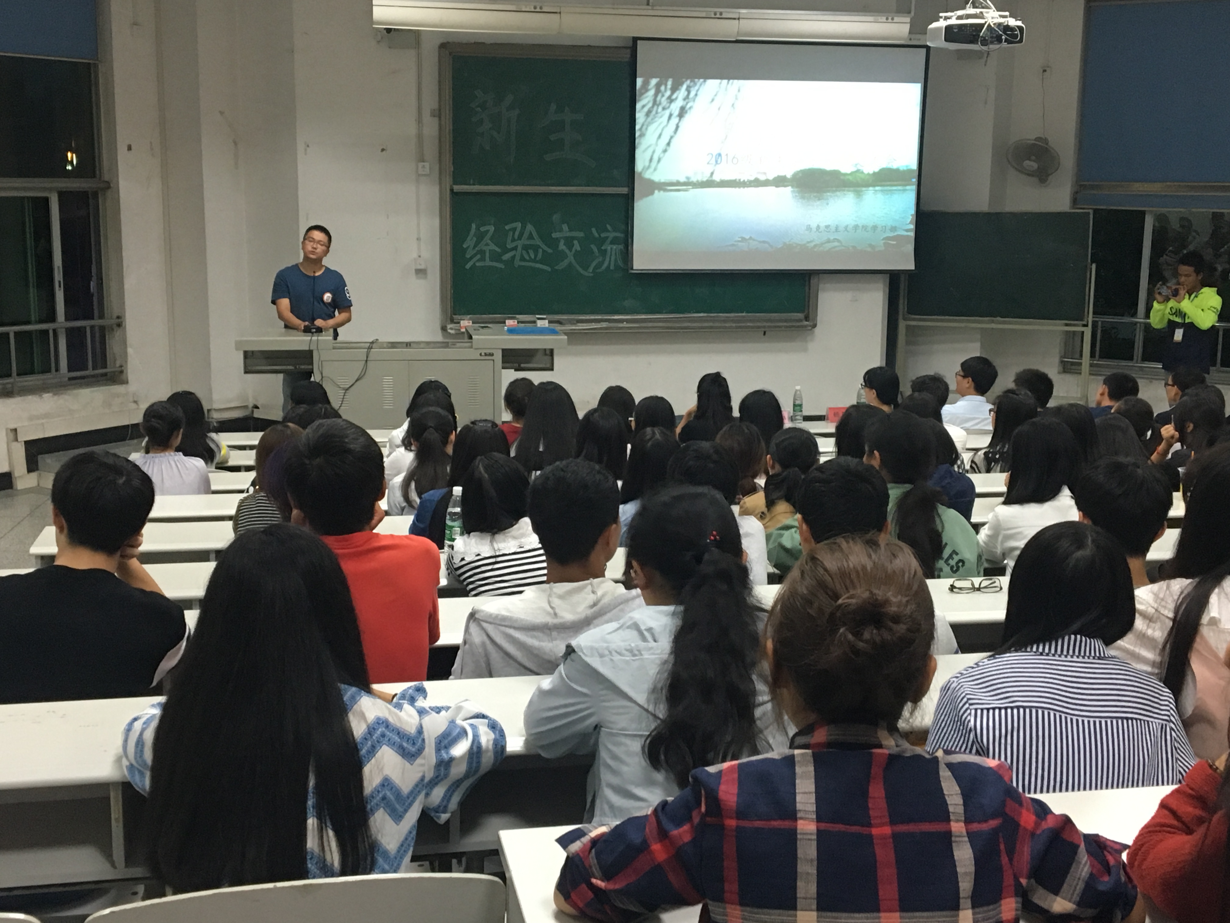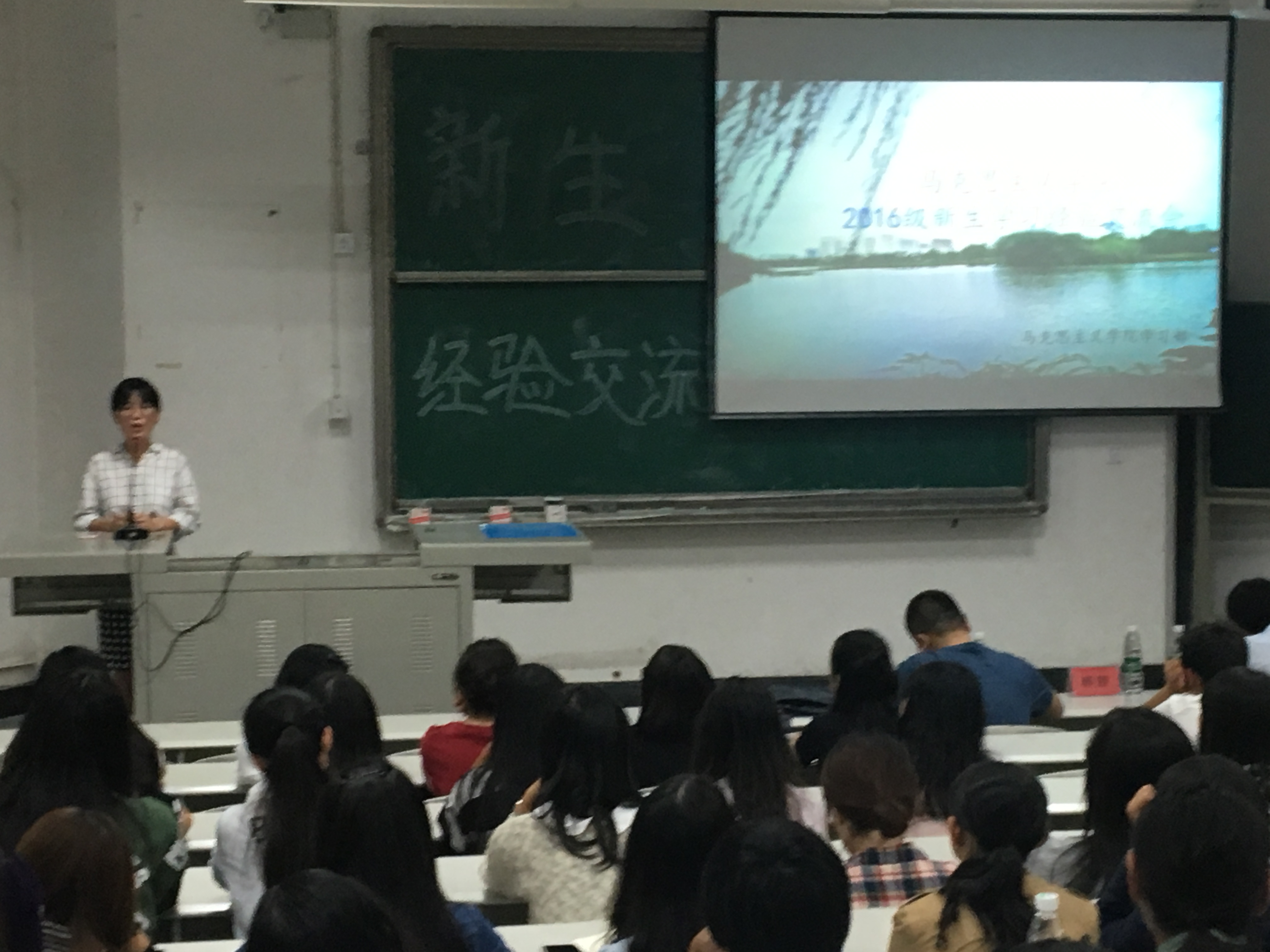 首先发言的是杨婷,她分享了自己的大学本科生活、辩论队生活以及研究生生活,她用自己学生会主席的经历为全体新生说明了丰富大学生活和开展第二课堂的重要性。同时杨婷指出大学四年既是收获之年,也是感恩之年,要感谢为自己指点迷津的人,感谢将他人的优点带给你的人,也要感谢不离不弃陪在身边的人。