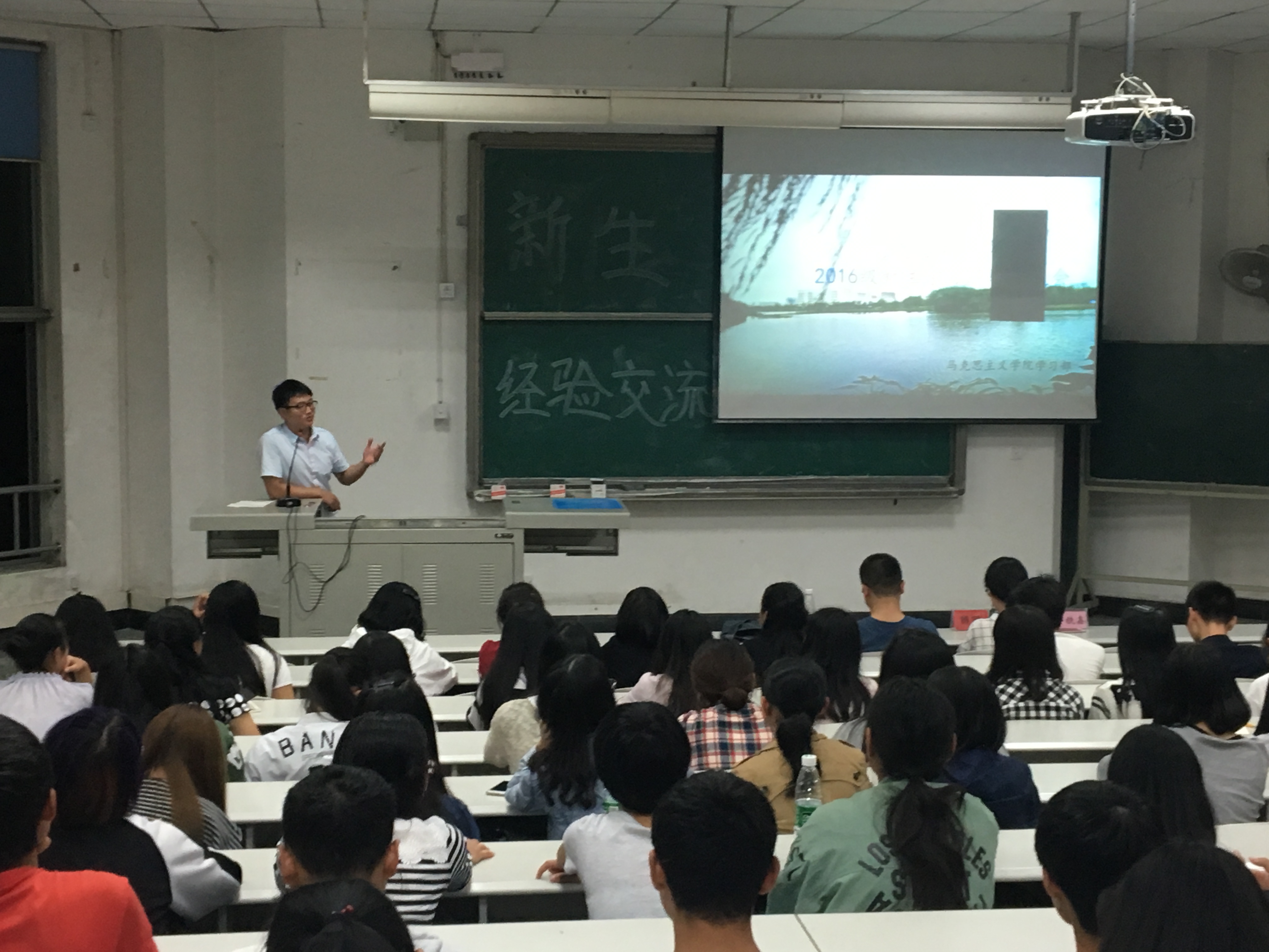 随后邱铁鑫给新生们放了一个励志短片,让新生们在捧腹大笑中同时引起深思。他提到许多大一的新生经历了高三的煎熬,许多的压力都在大学释放和发泄出来,很多新生都认为进入大学的他们已经拿到了用人单位的入场券而完全松懈下来。针对这个问题,邱铁鑫给新生们提出了“六个很重要”,即“目标很重要”,“少走弯路很重要”,“英语很重要”,“谈恋爱很重要”,“第二课堂很重要”,“社交能力很重要”。在谈到第二专业这个很多新生都感兴趣的话题上,邱铁鑫指出学有余力且能够坚持下去的同学可以去修双学位,因为双学位是对自身体力和精力的双重挑战。他告诉大家:“能够耐得住寂寞,才能配得上光环。”在最后的提问环节中,新生们都勇敢地提出了自己的困惑,并且得到了解决。