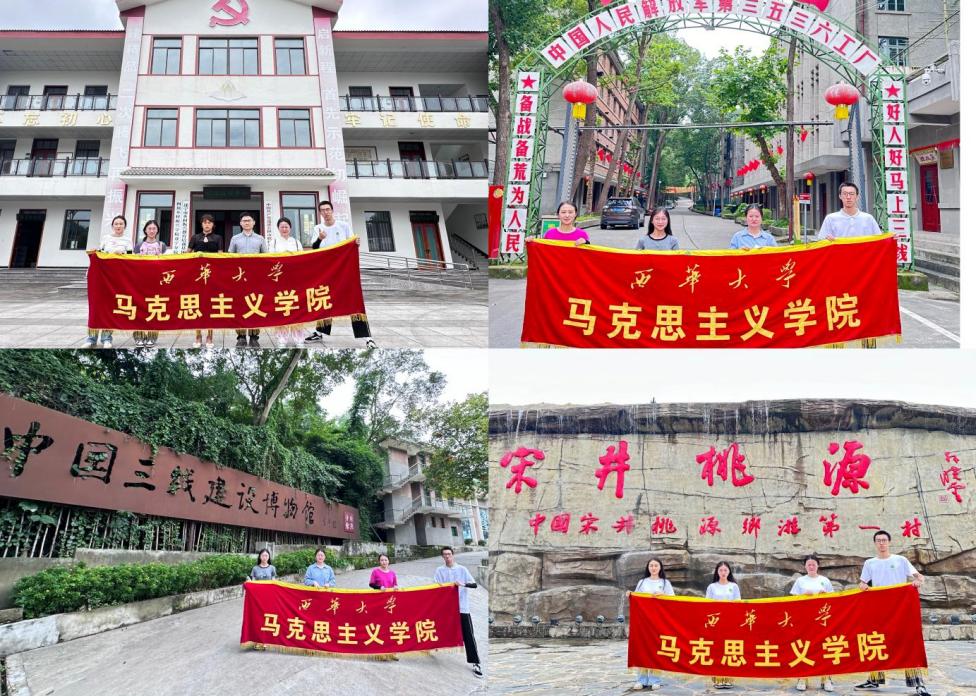 7月17日,实践团前往射洪市广兴镇双江村、瞿河镇中皇村,感悟“三线织锦洪城梦田、诗酒茶花不负韶华”和美乡村建设。“陈子昂故里”双江村以“山水田园”诠释生态的射洪之源,以“子昂归处”打造射洪特色文脉,走出一条“农业文旅化、文化娱乐化、产业市场化、艺术国际化”的乡村振兴新道路。该村道路宽敞、楼房整齐、环境优美,村容村貌让人眼前一亮。中皇村原是四川省省级脱贫村,在遂宁市委“五化”“三园一体”思路的指导下,依托上个世纪三线工厂3536厂旧址,以“传承三线精神、依托科技赋能、发展特色产业、推动乡村振兴、实现共同富裕”的发展思路,成功打造了“农文旅融合”的4A级乡村旅游风景区,积极探索出“三线”建设地区乡村振兴成功道路。