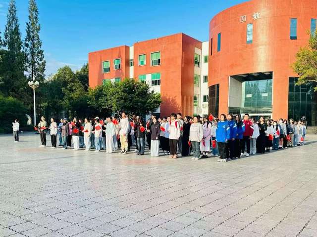 为庆祝中华人民共和国成立75周年,致敬伟大祖国,厚植爱国情怀,弘扬民族精神,增强全体师生民族自豪感和历史使命感,10月1日早上8:00,伟德bv国际体育团委组织学生团员在明德广场参加国庆升旗仪式。现场师生着装整齐,姿态端正,气氛庄严肃穆。