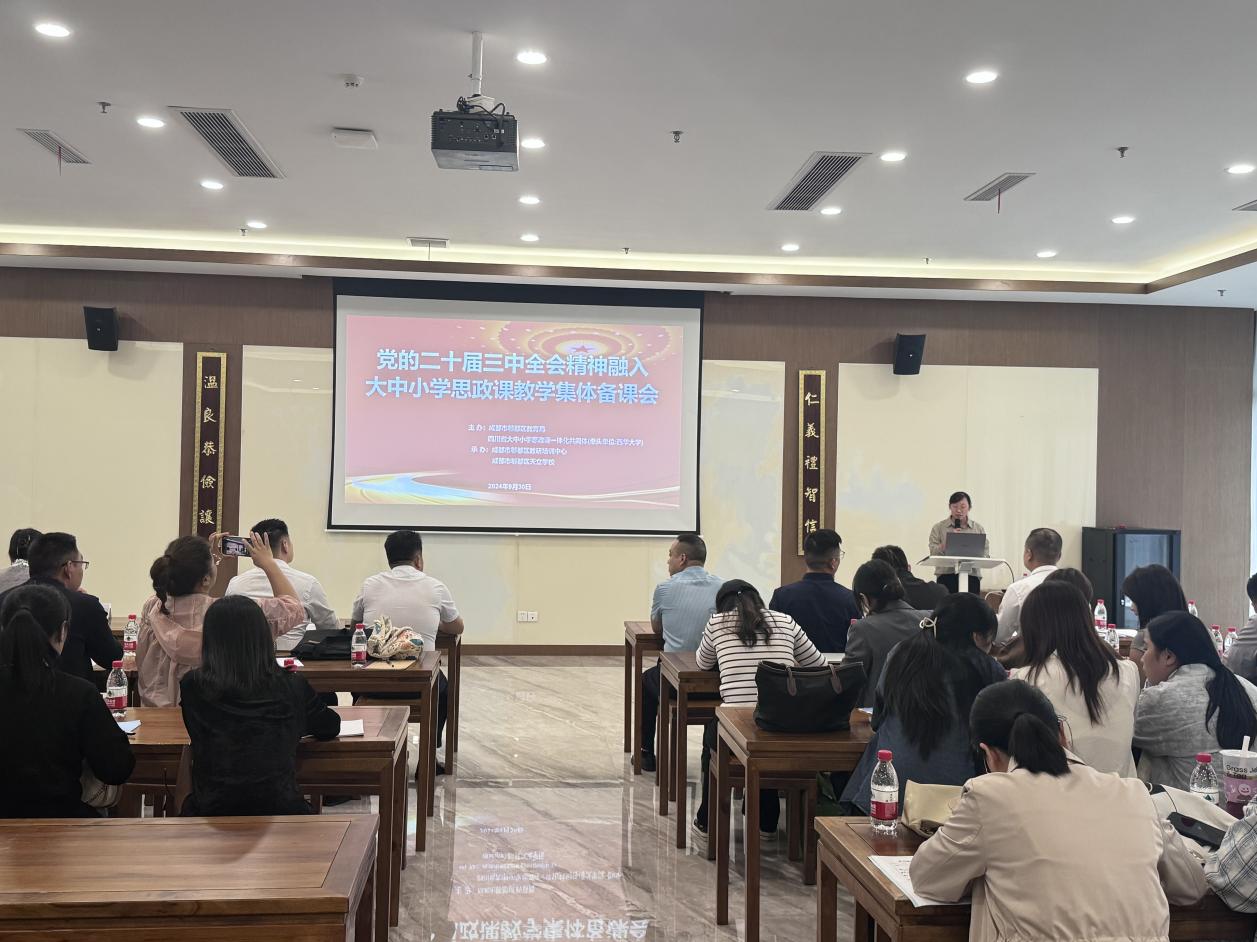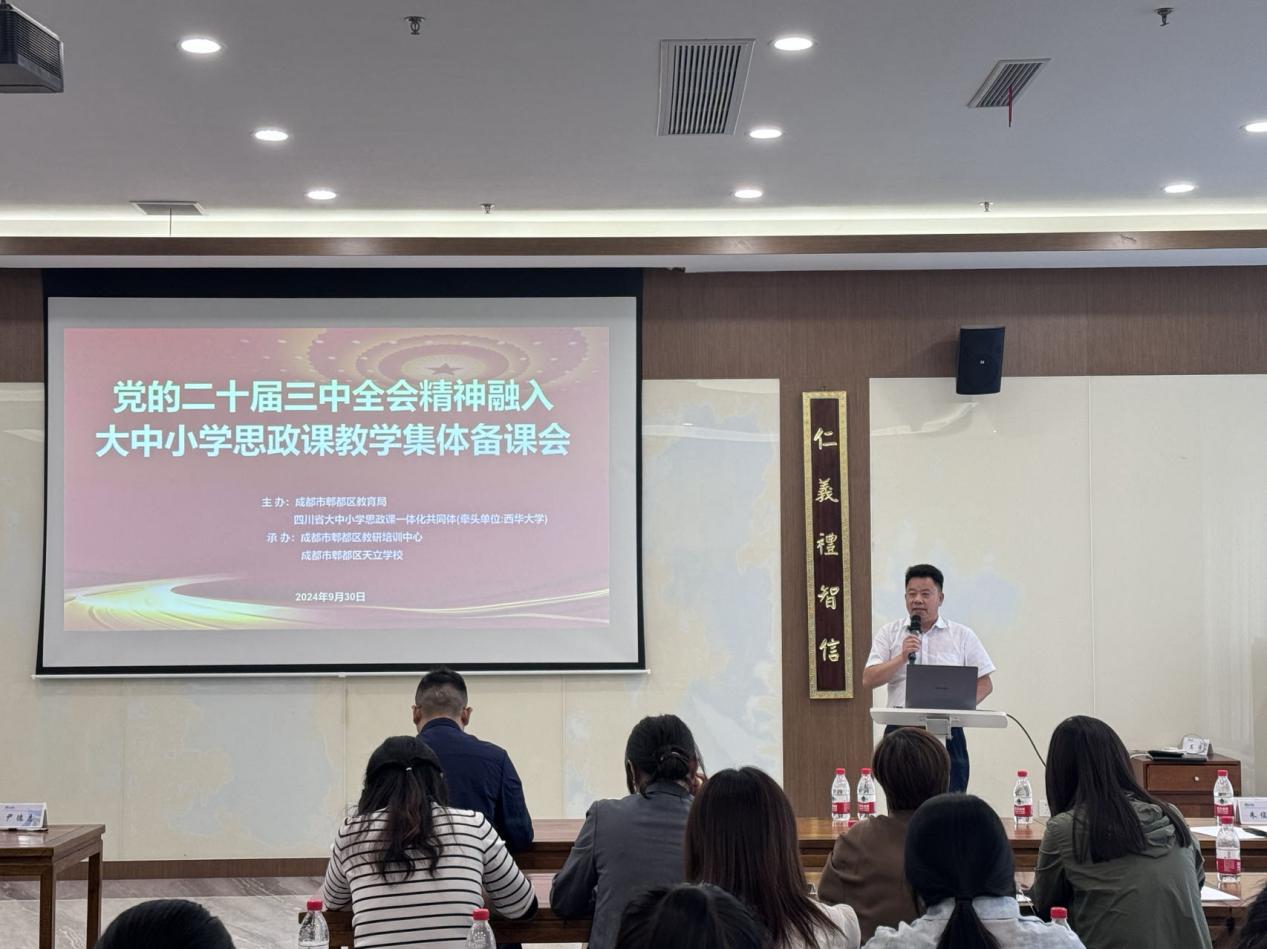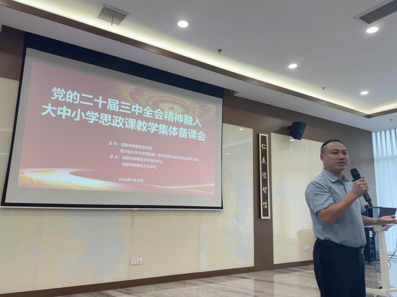 为加深思政课教师对党的二十届三中全会精神的理解和把握,真正做到让党的创新理论“进教材、进课堂、进头脑”,不断增强思政课的思想性、理论性、亲和力和针对性。2024年9月30日成都市郫都区教育局与bevictor伟德牵头的四川省大中小学思政课一体化共同体主办了“党的二十届三中全会精神融入大中小学思政课教学集体备课会”。此次备课会由成都市郫都区教研培训中心、成都市郫都区天立学校承办。bevictor伟德,伟德bv国际体育副院长尹德志、思想政治教育系主任何为以及学科教学(思政)研究生唐秀莲参与此次备课会。
