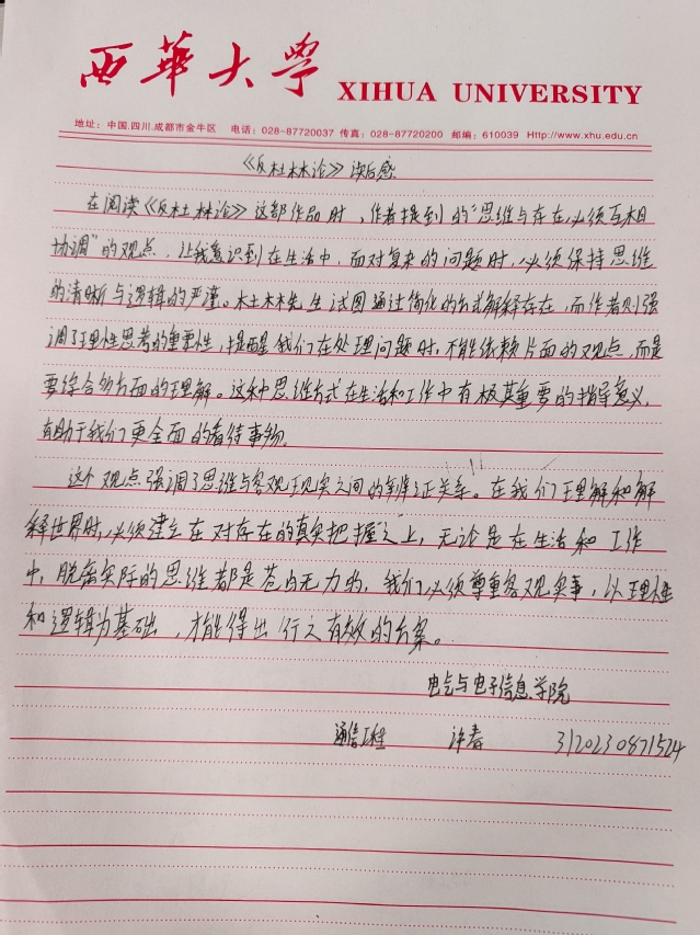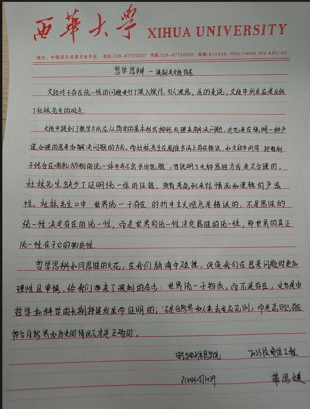 电气与电子信息学院 通信工程 蒲思媛