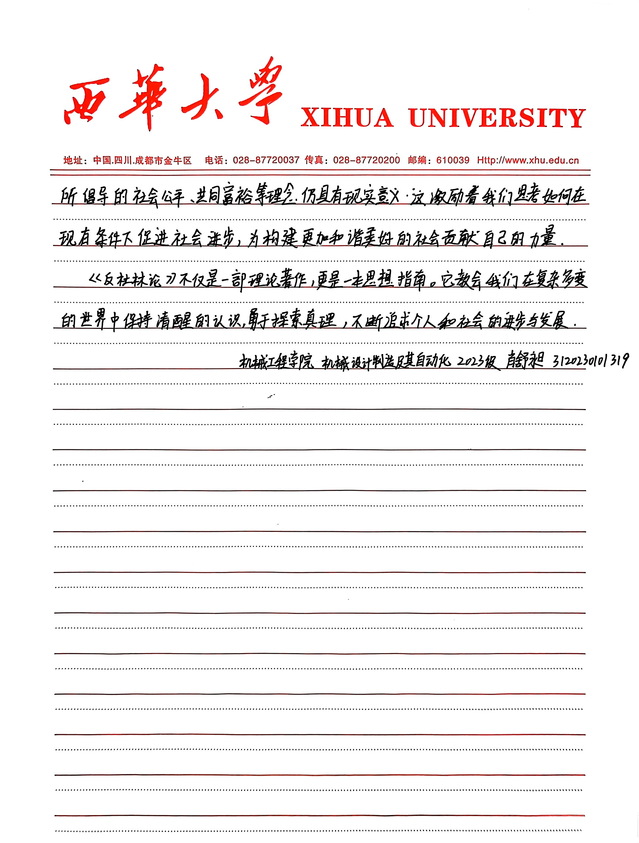 机械工程学院 机械设计制造及其自动化 肖舒昶