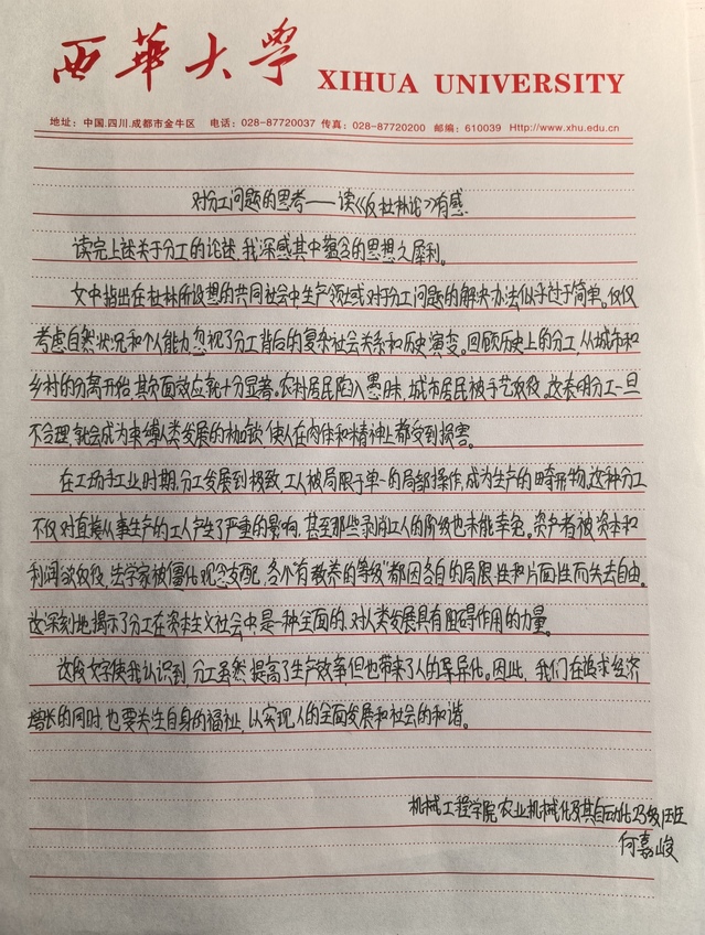机械工程学院 农业机械化及其自动化 何嘉峻