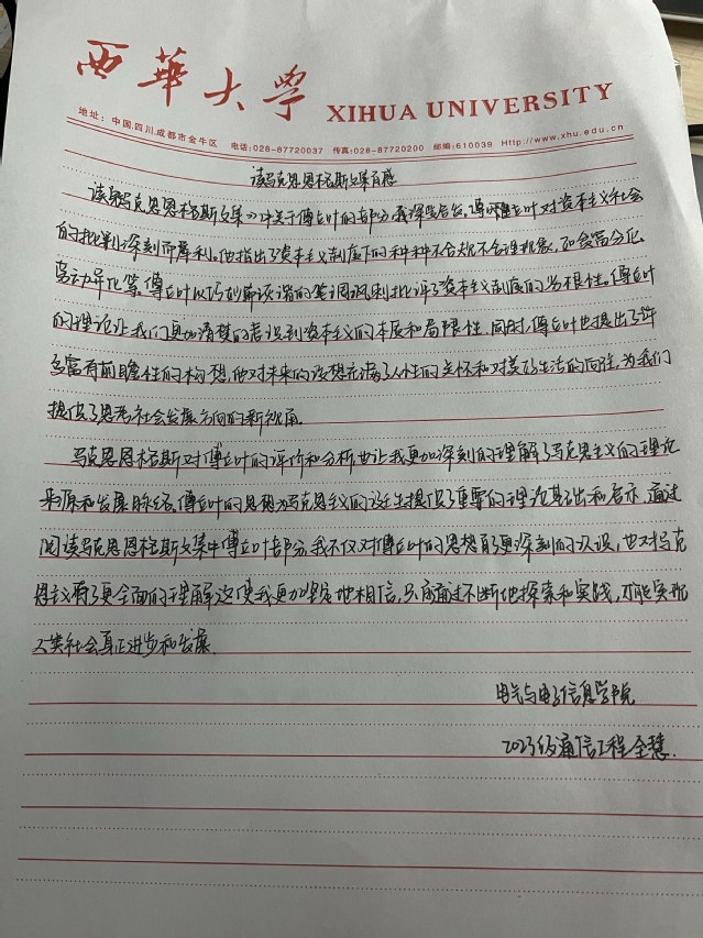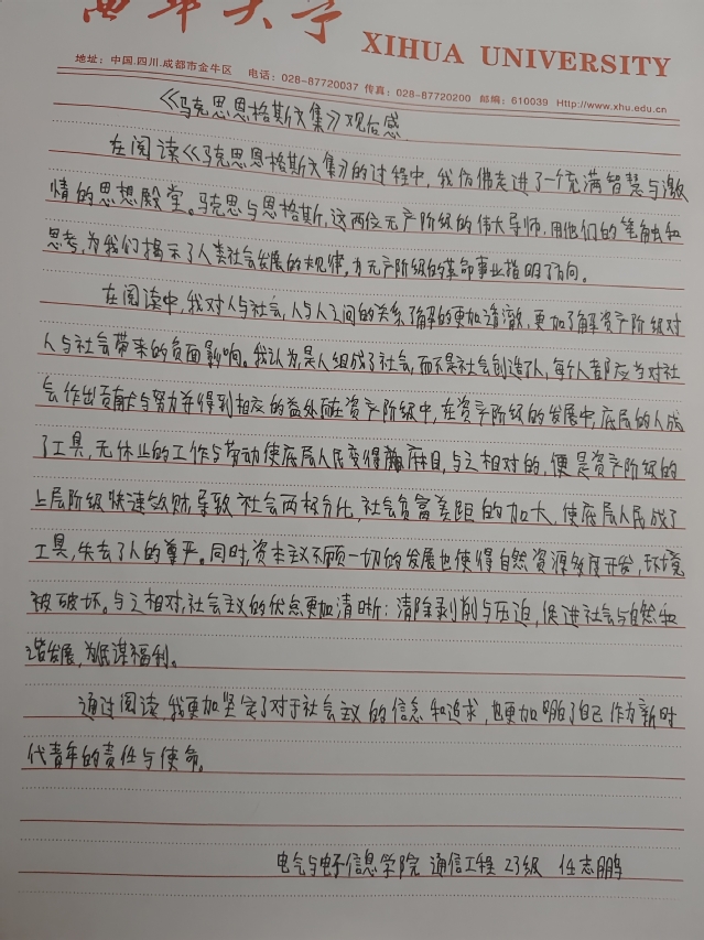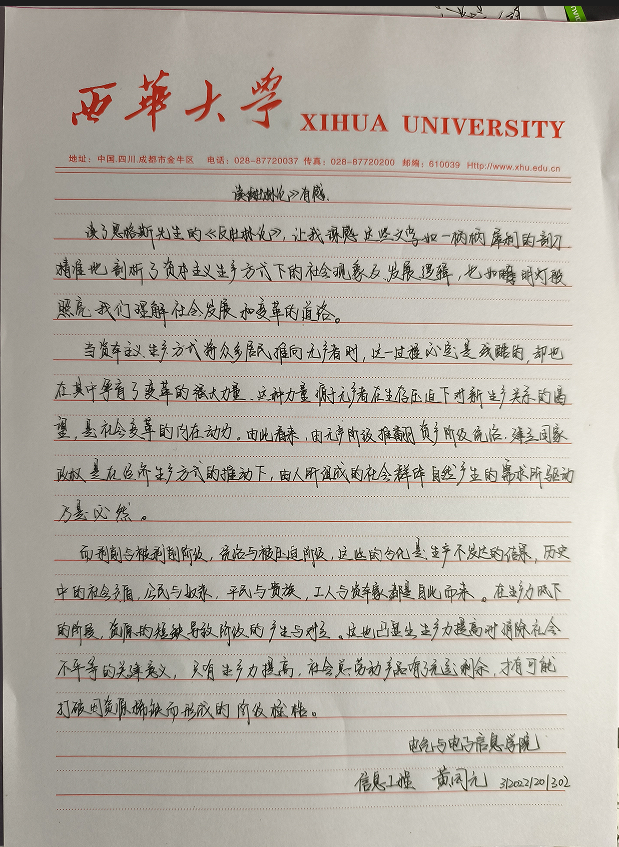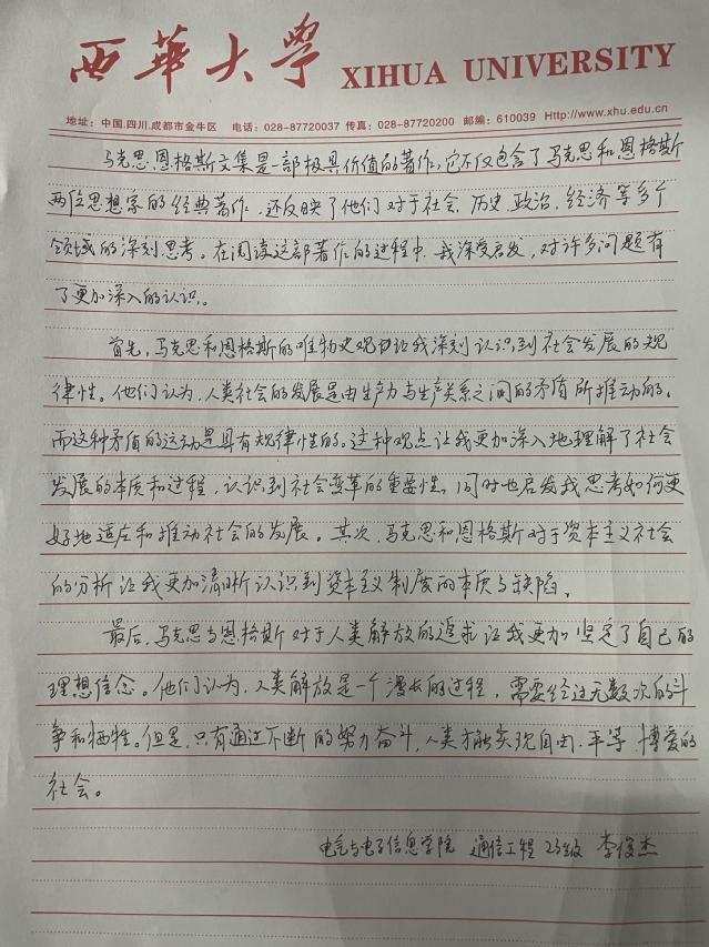 电气与电子信息学院 通信工程专业 席浩田