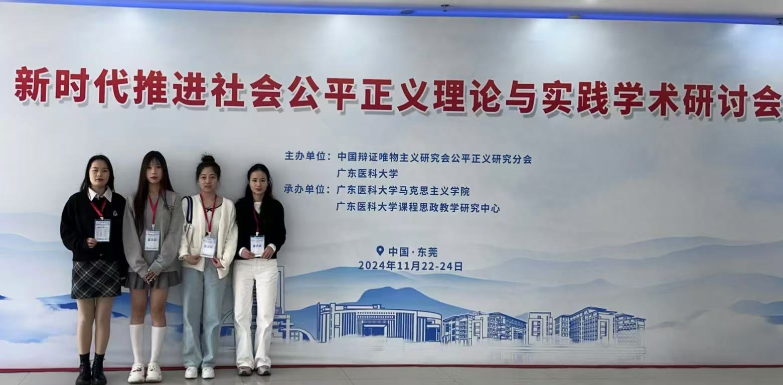 11月23日,由中国辩证唯物主义研究会公平正义研究分会、广东医科大学主办,广东医科大学伟德bv国际体育、广东医科大学课程思政研究中心承办的“新时代推进社会公平正义理论与实践”学术研讨会在广东东莞召开。此次研讨会汇聚了来自北京大学、中山大学、上海师范大学、武汉大学、电子科技大学、bevictor伟德等60多所高等院校约80名专家学者、博士研究生和硕士研究生。我院2023级马克思主义理论专业研究生任赛赛、寇兴雨、周颜和伍娜受邀参与此次会议。