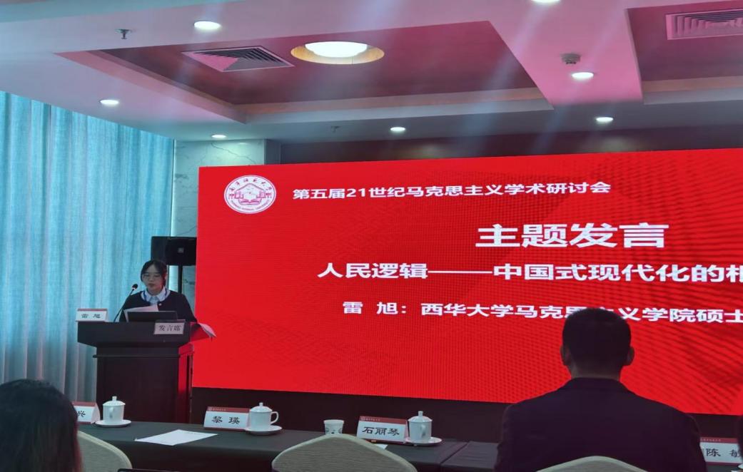 我院20 23级研究生雷旭以《人民逻辑:中国式现代化的根本逻辑》为题在分论坛作了发言。论文从根本遵循、价值立场、价值取向三个方面对中国式现代化的人民逻辑进行了深刻阐释与剖析。