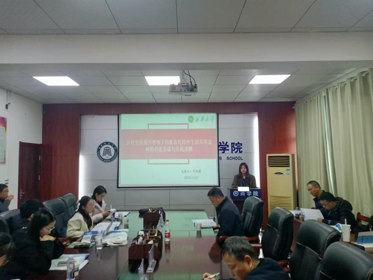 12月7日,城乡融合发展与乡村全面振兴学术研讨会暨湖北省城乡统筹发展研究会2024年年会在湖北黄冈举行。本次会议由湖北省城乡统筹发展研究会主办,由中南财经政法大学乡村振兴研究中心、黄冈师范学院大别山乡村振兴研究院、湖北第二师范学院乡村振兴研究中心联合承办。来自全国各地的100多名专家学者围绕“城乡融合发展与乡村全面振兴”这一主题共同研讨城乡融合发展的新路径、新模式,共同探寻乡村全面振兴的新策略、新举措。我院2023级马克思主义理论专业研究生牛冰倩应邀参会并在分论坛发言。