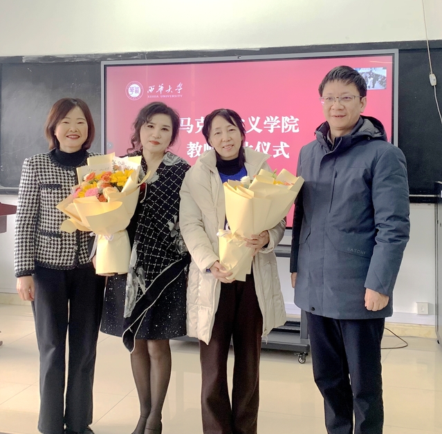荣休仪式上,学院党委书记万远英和院长冯永泰共同为荣休教师颁发了学院精心定制的鲜花。万远英书记代表学院高度评价了李琪、徐涛、张珍华3名荣休教师在教学、科研及学院建设等方面作出的卓越贡献,称赞他们数十年如一日,教书育人,传道授业,为学院的发展倾注了心血与智慧,并希望老教师退休不退志、离岗不离心,继续关心、关注和支持学院发展;希望青年教师一定要以老一辈人“丹心育桃李,笃行守初心”的精神为榜样,认真践行“六个要”的要求,遵循“八个相统一”的原则,推动思政课改革创新,在新时代的征程中书写属于青年一代的人生篇章。冯院长表示,学院的发展离不开每一位教师的辛勤付出,荣休教师们的精神将激励青年教师继续前行,学院将为青年教师成长搭建平台、畅通沟通交流渠道。
