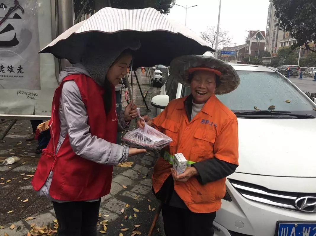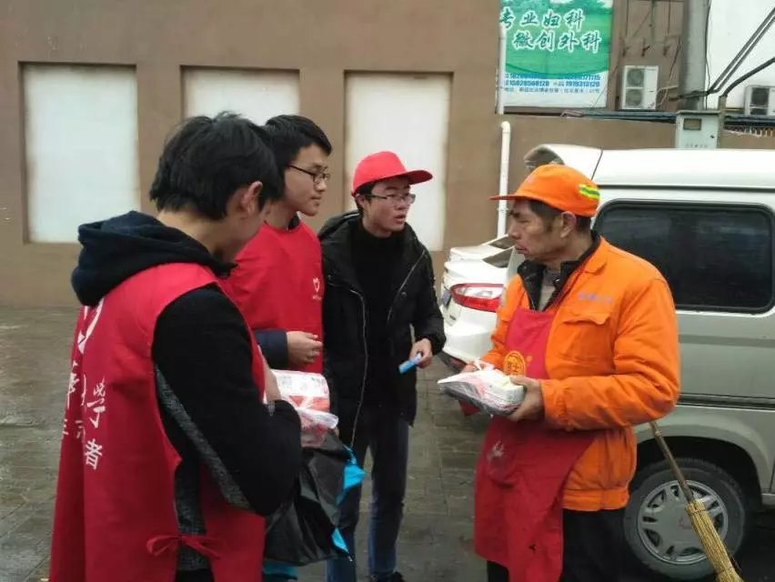 活动开展过程中,首先由组织部全体成员和青服队部分成员在充分的协调配合下完成了种子的播种任务,为自然添上一抹绿色;与此同时青服队其他成员准备志愿活动的物资:爱心便当和热牛奶。在第一小组播种完成后,所有成员在西门集合,分为5个小组分别给环卫工人送上温暖的牛奶和爱心便当,环卫工人接受并感谢了大家的“爱心礼物”。活动结束后,进行了合影留念。