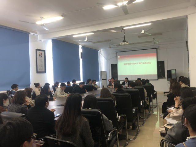 动员会在庄严的国歌中拉开帷幕,全体党员重温入党誓词。学院党委副书记李欣作了关于开展党史学习教育活动重要意义的讲话,要求全体党员在学习习近平总书记在党史学习教育动员大会上的重要讲话的基础上,立足中国共产党百年华诞的重大时刻和“两个一百年”历史交汇的关键节点,阐述了开展党史学习教育的重大意义和工作要求。