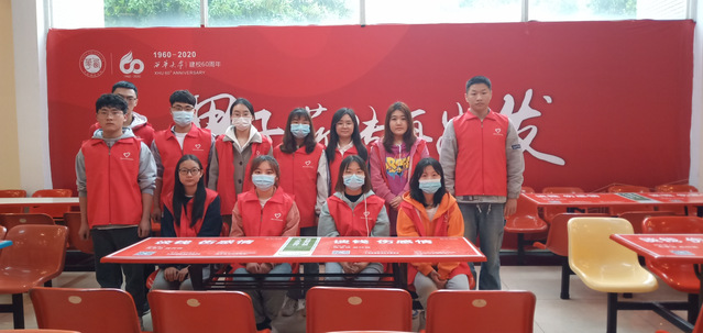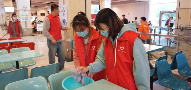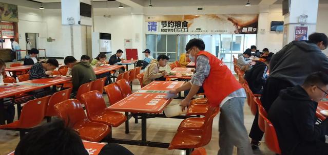此次活动分为两个小组,四食堂一楼11位同学,二楼由另外11位同学负责。主要负责事项有:组织学生自觉排队,做到文明有礼;打扫桌面、地面等;回收餐具等等。