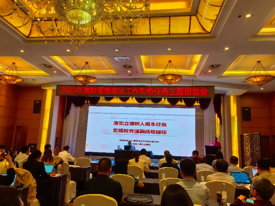 为学习贯彻党的二十届三中全会和习近平总书记在全国教育大会上的重要讲话精神,坚持不懈用习近平新时代中国特色社会主义思想铸魂育人,5月10日,由中国教育发展战略学会思想道德建设专业委员会主办的“2025年高校思想政治工作形势”主题报告会在昆明召开。我院王贝副院长和邢斐博士参会。