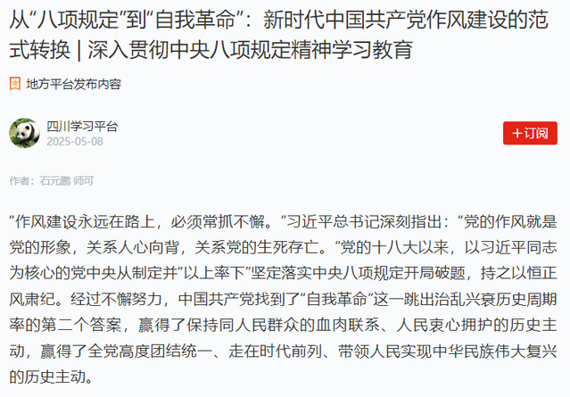 2025年5月8日,《学习强国》四川学习平台刊发了bevictor伟德团委书记、伟德bv国际体育党委副书记、纪委书记石元鹏与伟德bv国际体育研究生师可撰写的题为“从‘八项规定’到‘自我革命’:新时代中国共产党作风建设的范式转换 ”的理论阐释文章。5月18日,北京科技大学思想政治工作研究院的“思政热点”公众号进行了转发。全文如下: